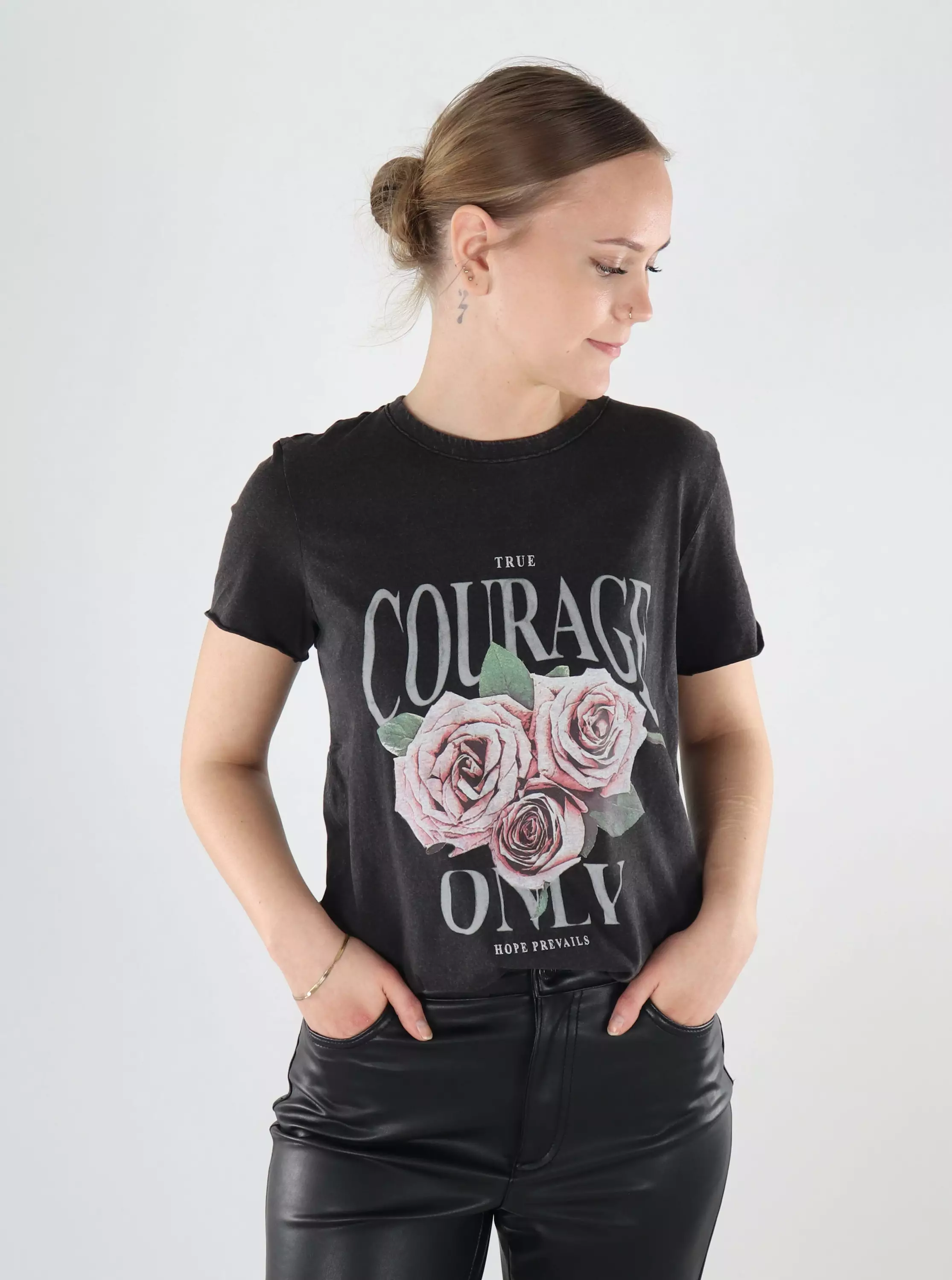 Only Damen T-Shirt mit Print schwarz/rosa coura