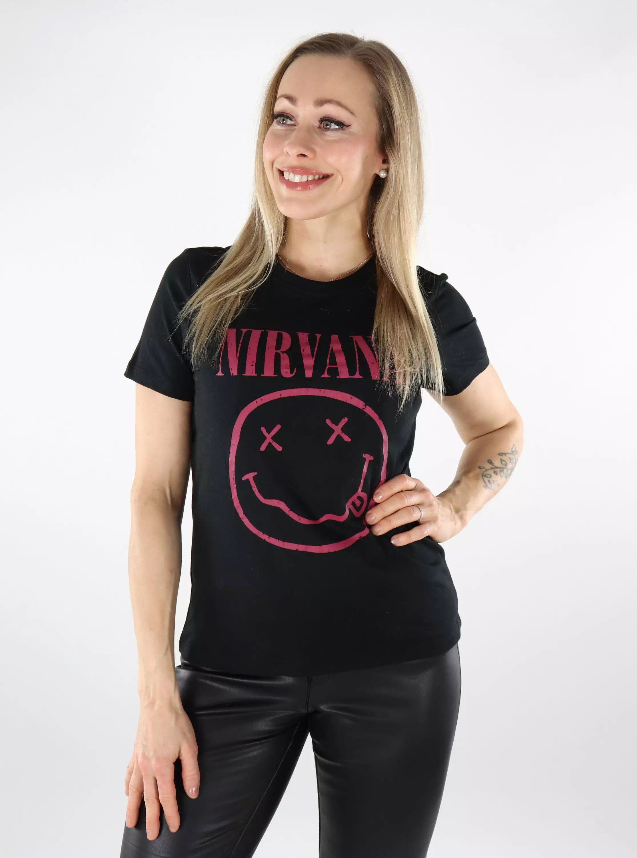 Only Damen T-Shirt Nirvana schwarz/lächelnd