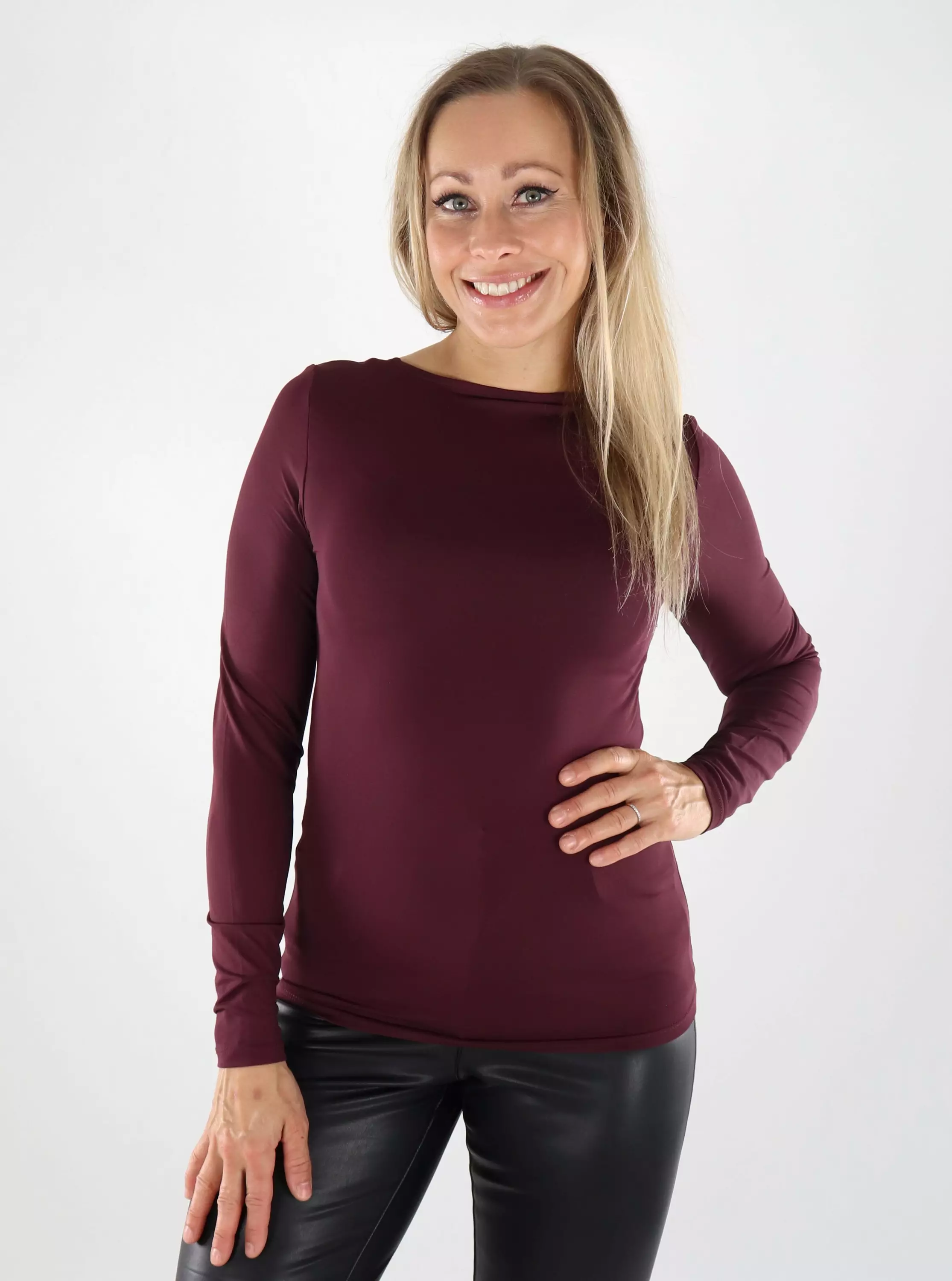 Diese weinrote Longbluse von Only ist eine vielseitige und stilvolle Wahl! Die Bluse kann wendbar getragen werden – einerseits mit einem klassischen, höheren Rundhalsausschnitt und andererseits mit einem U-förmigen Schnitt. Perfekt, um deinen Stil je nach Anlass mühelos zu wechseln.