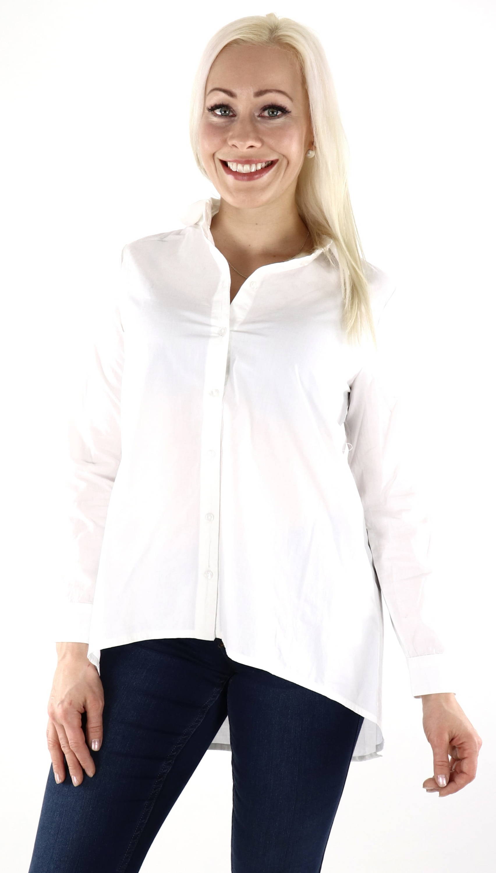Lockeres Baumwollhemd, hinten länger geschnitten.