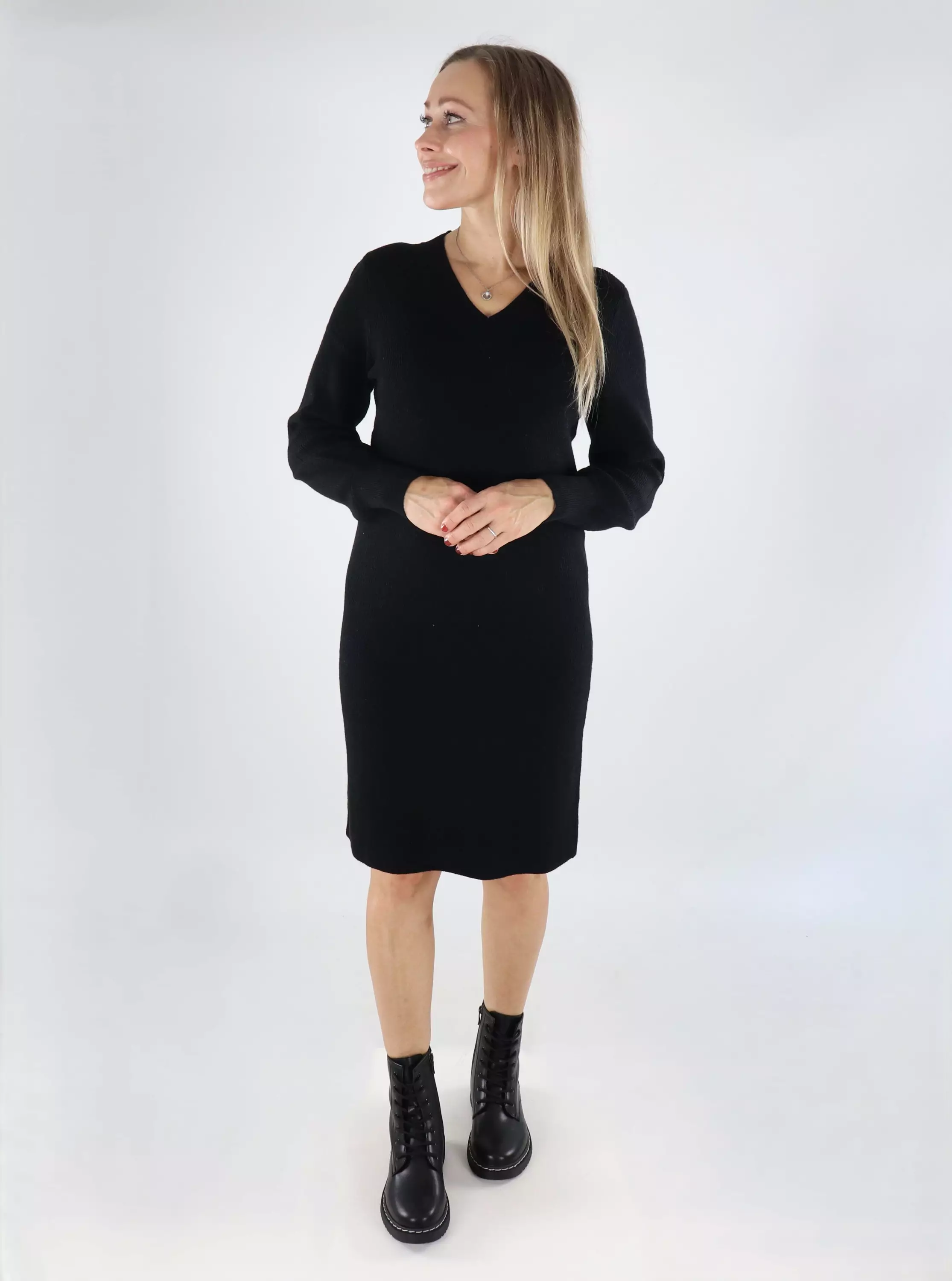 Only Strickkleid mit V-Ausschnitt schwarz