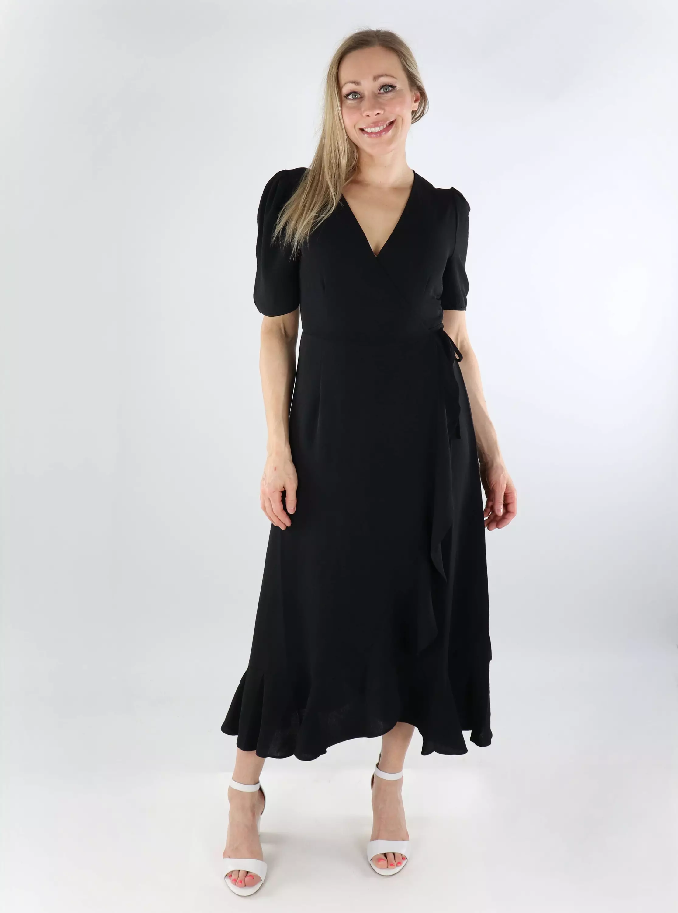 Only Wickelkleid Mette SS Wrap Midi Schwarz