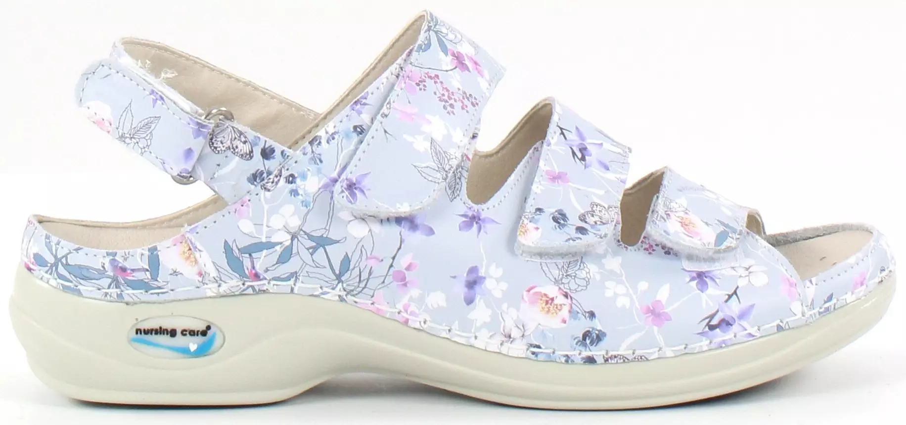 Drei verstellbare Riemen oben und einer hinten. Absatzhöhe ca. 3 cm.
