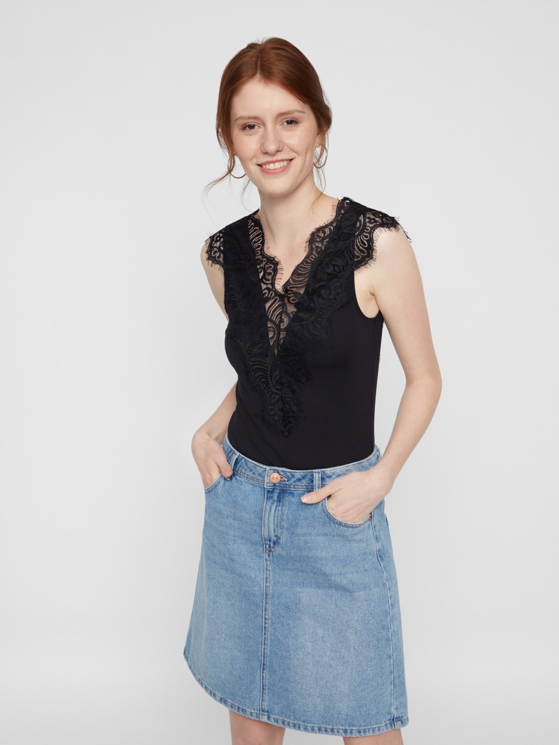 Oberteil mit Spitzendekoration aus sehr dehnbarem Material.