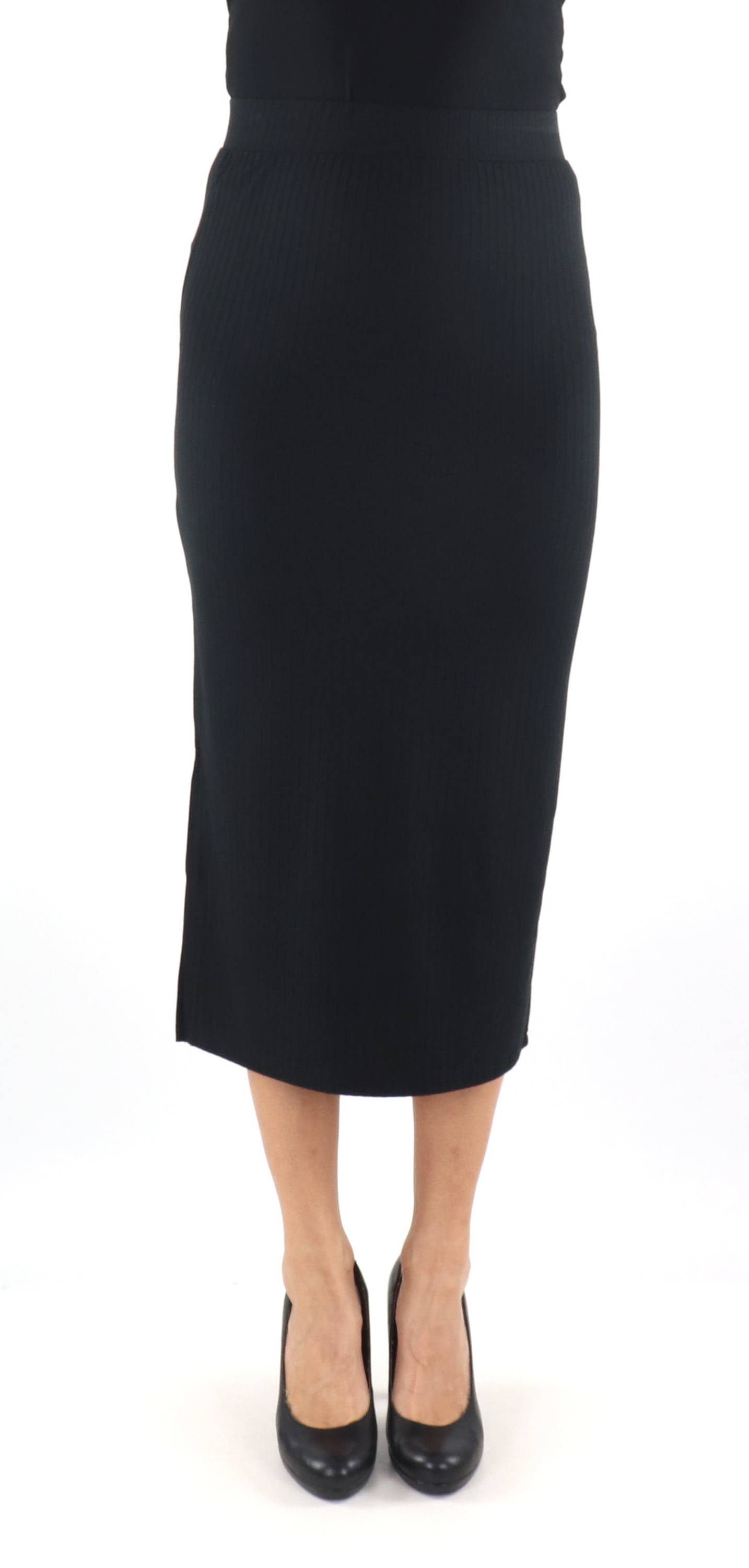 Midi-Rock aus elastischem Rippmaterial mit seitlichem Schlitz