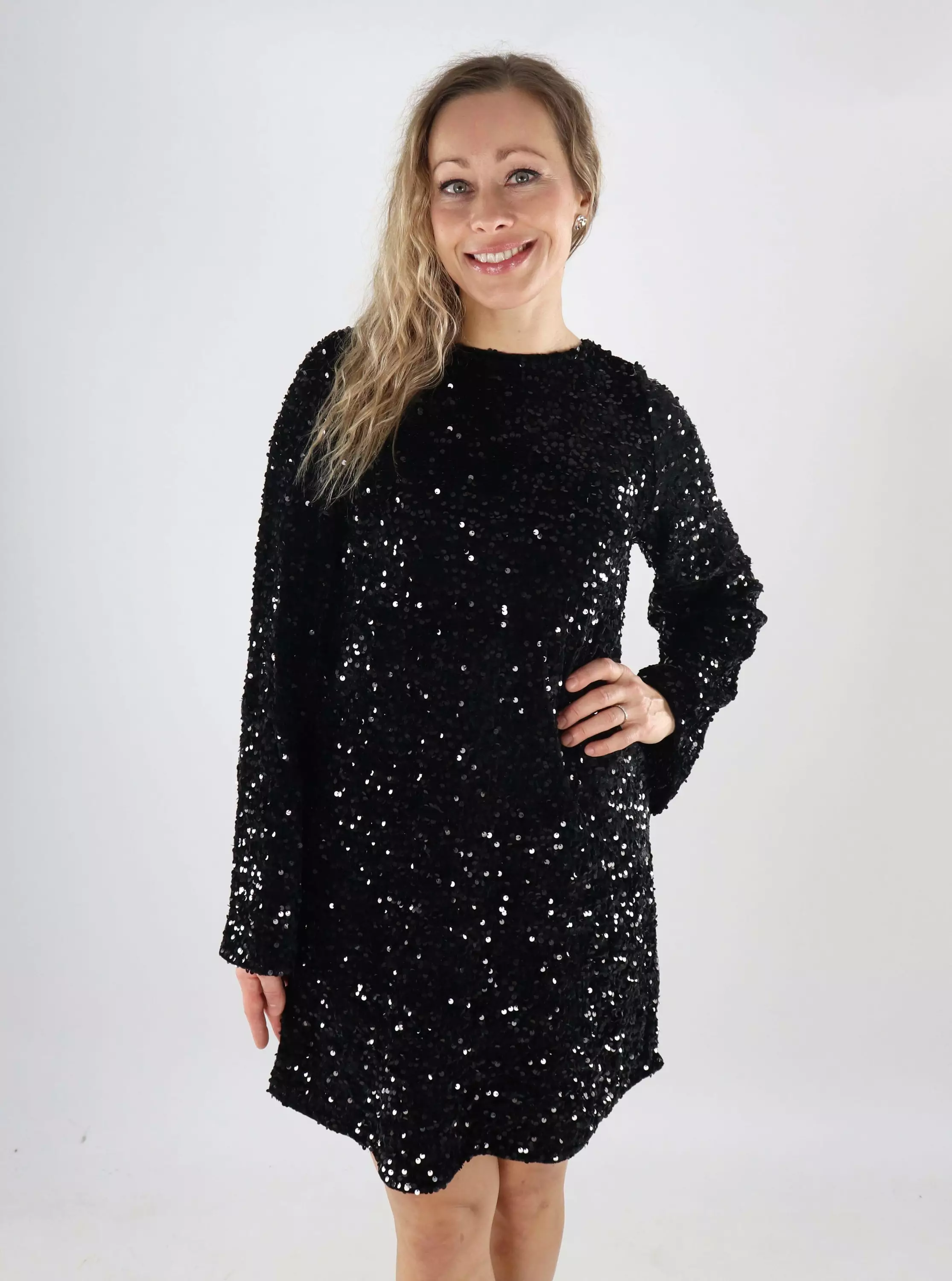 Pieces Paillettenkleid mit tiefem Rückenausschnitt schwarz/schwarz