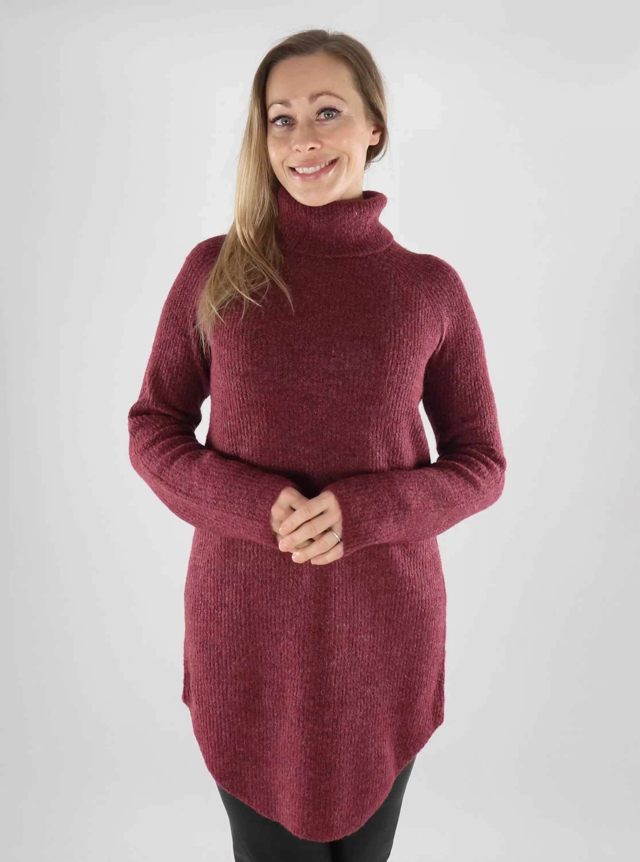 Pieces Strickkleid Ellen lang gedämpftes Portwein