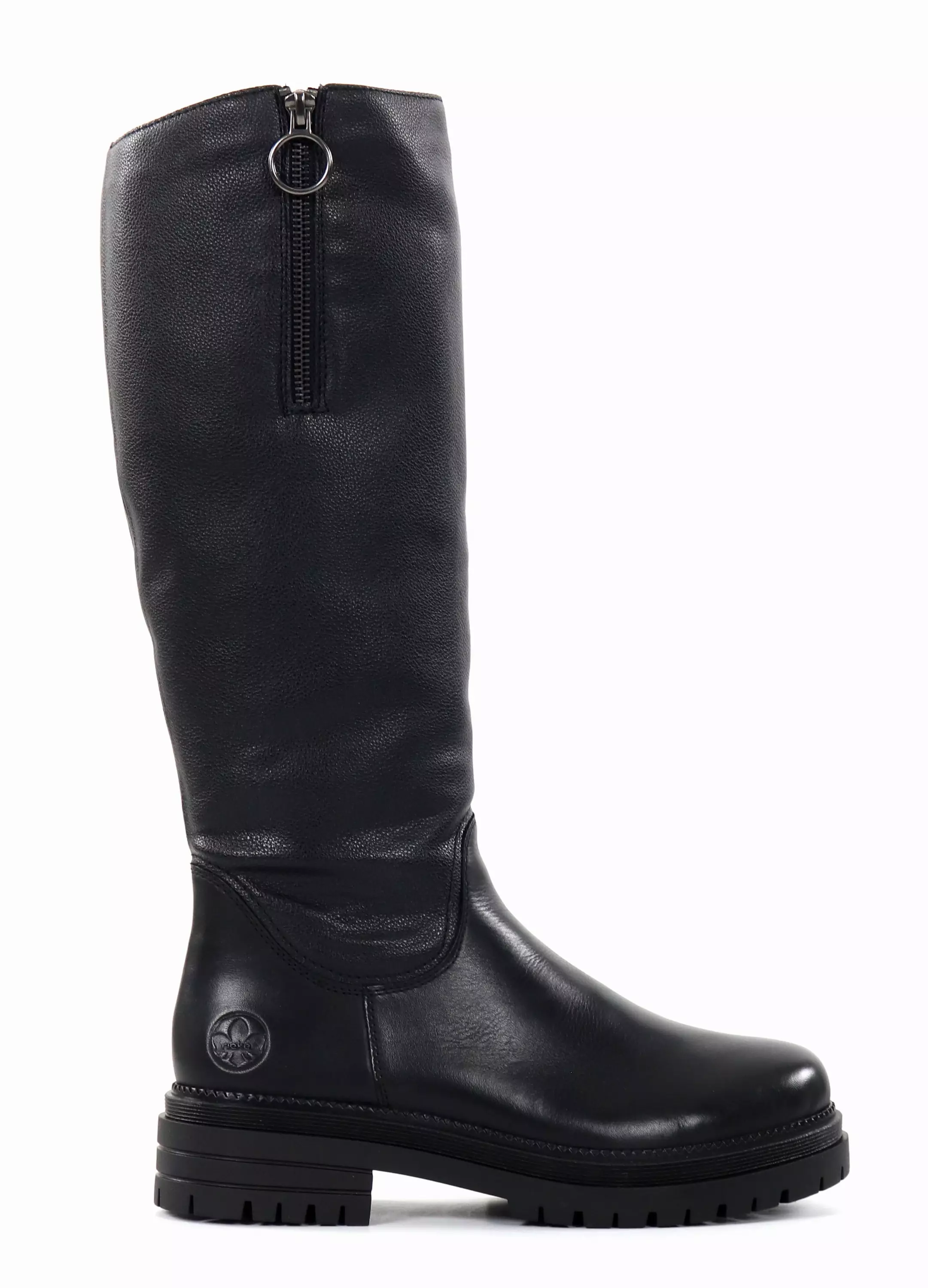 Rieker Stiefel aus echtem Leder, mit zusätzlichem Platz für den Schaft durch einen Reißverschluss an der Außenseite. Rutschfeste und flexible Gummisohle.