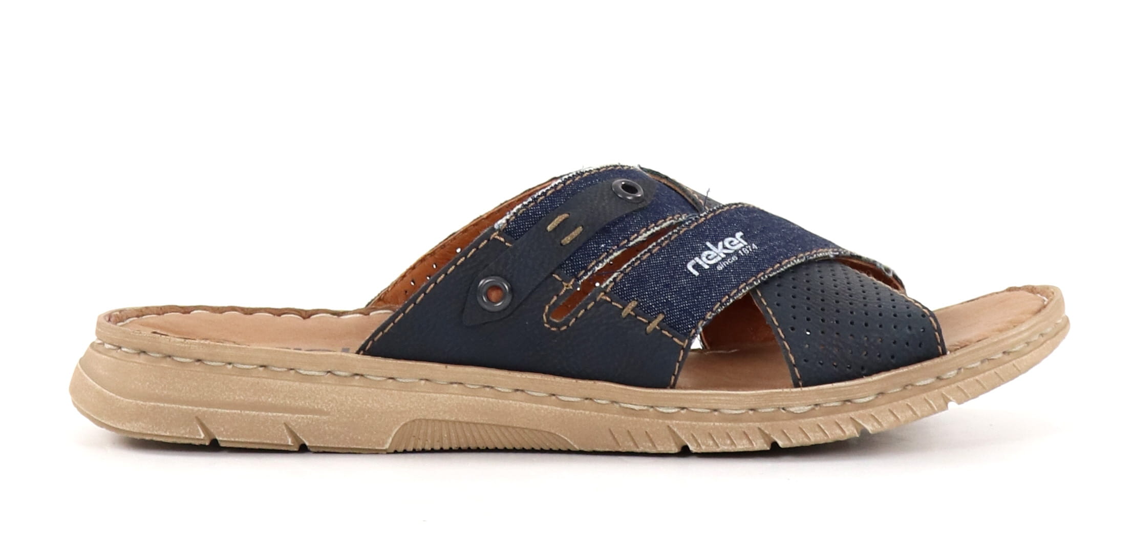 - Denim- und Schnallendetails sowie ein Rieker-Logo auf der Oberseite