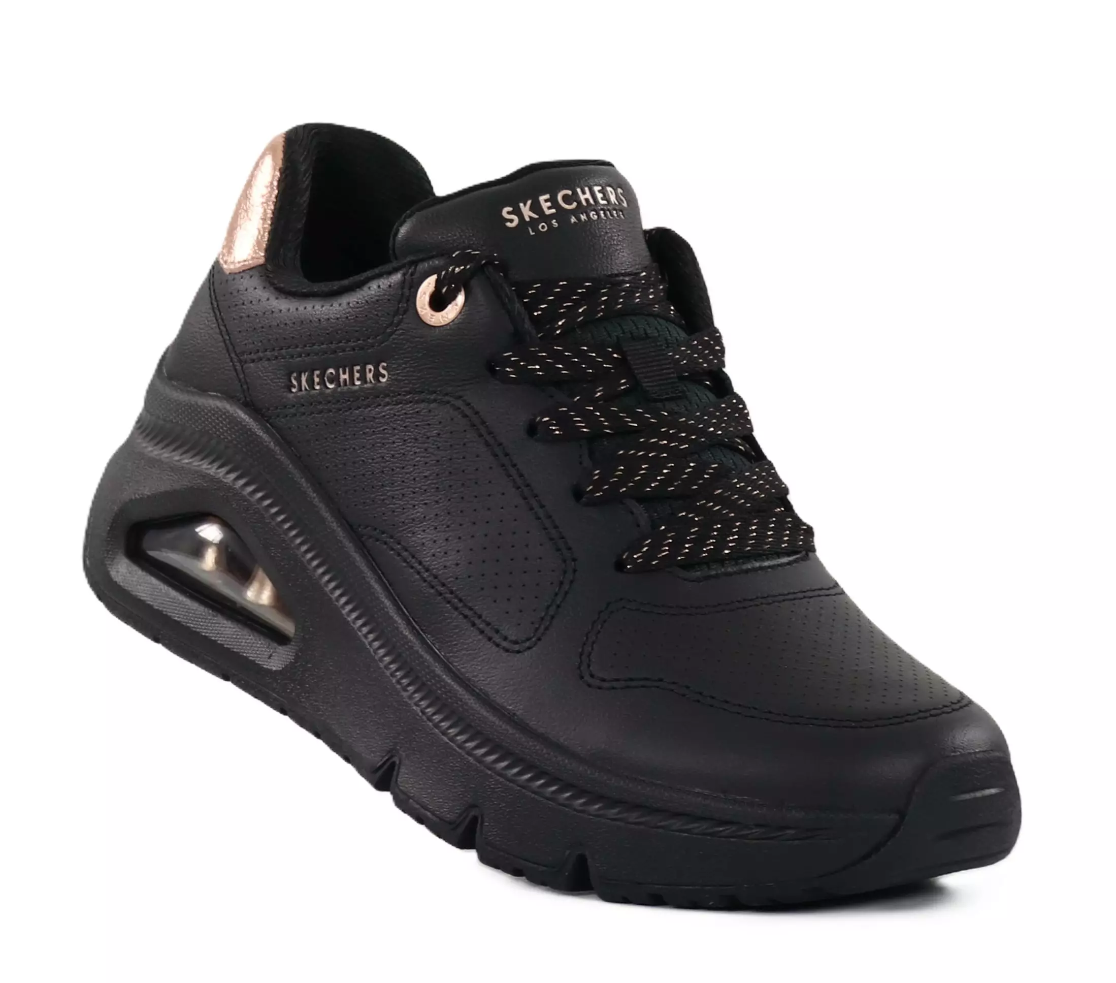 Erlebe höchsten Gehkomfort mit den Skechers Uno Sneakers! Die stoßdämpfende Skech-Air Luftpolsterung sorgt dafür, dass jeder Schritt leicht und mühelos ist – egal, ob du in der Stadt unterwegs bist oder den ganzen Tag auf den Beinen stehst. Stilvolle metallic Akzente runden das moderne Design ab und setzen ein markantes Statement.