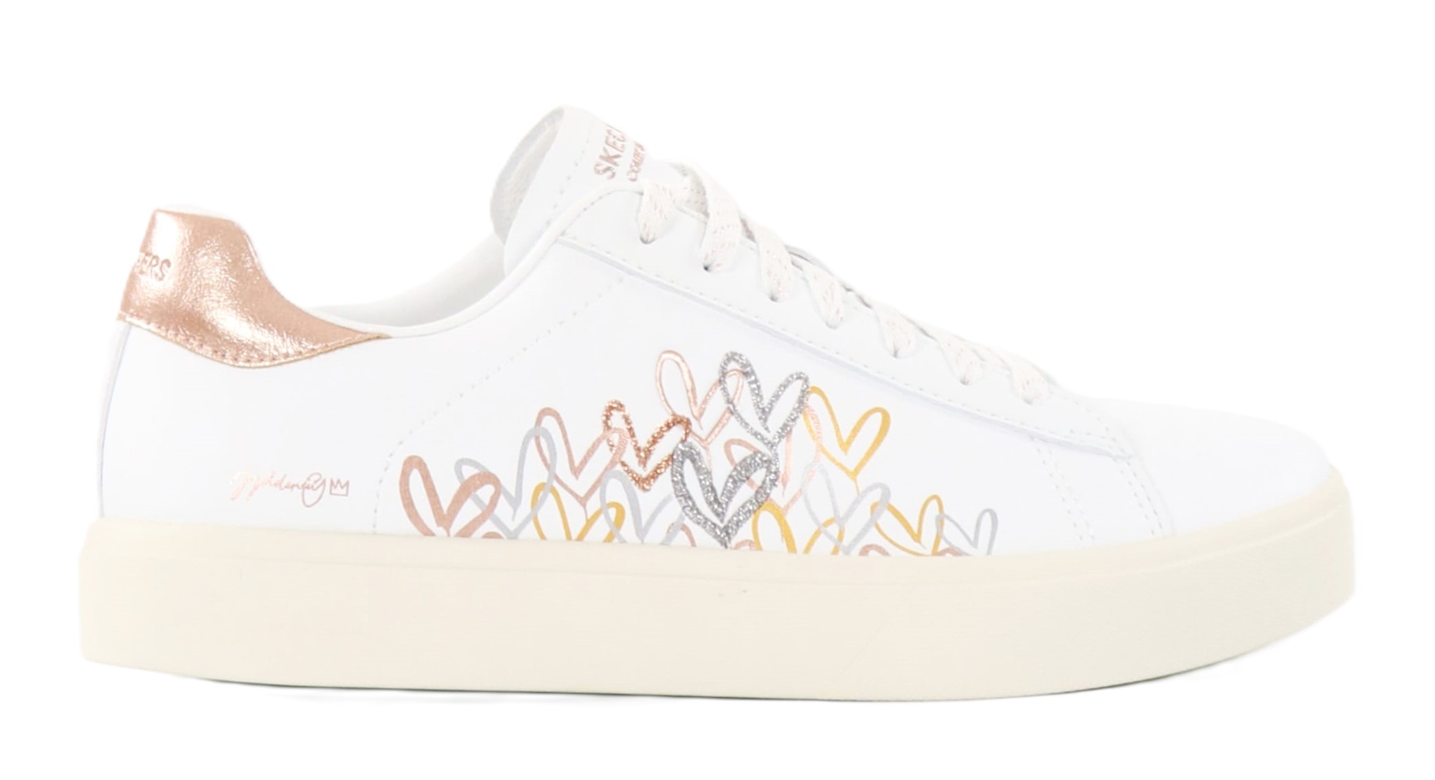 Klassische, stilvolle Sneakers von Skechers mit einer luftgekühlten Memory Foam Einlegesohle. Ein Herzmuster des international bekannten Künstlers James Goldcrown!
