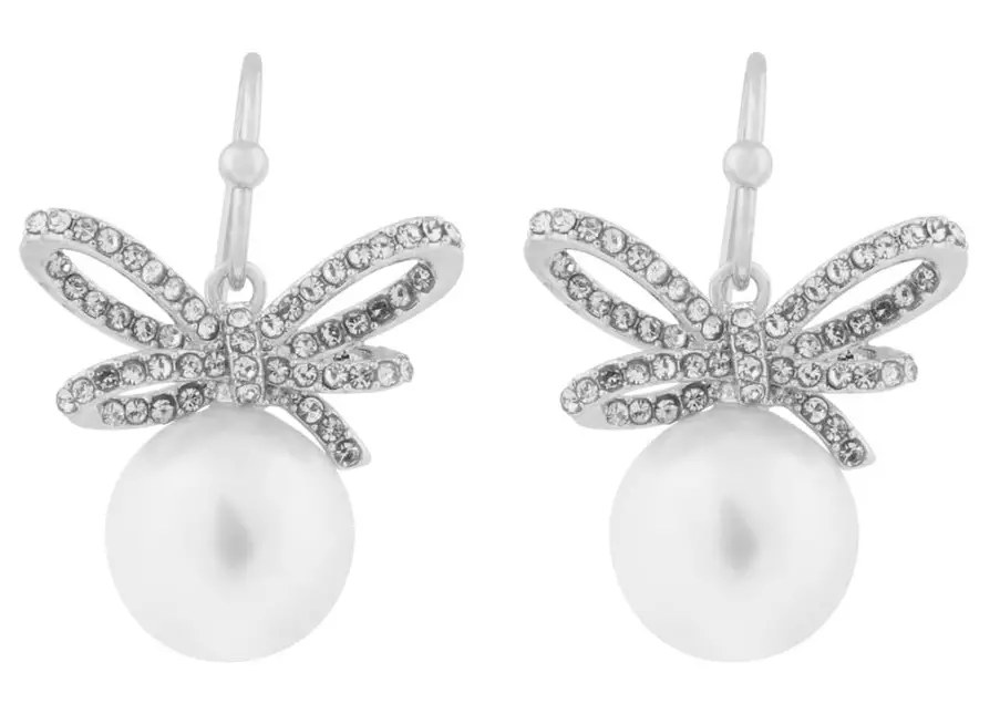 - Mit Silber überzogenes Messing, Steine aus synthetischem Zirkonia, Perle aus Glas