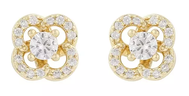 Wunderschöne vergoldete Stud-Ohrringe mit funkelnden klaren Schmucksteinen