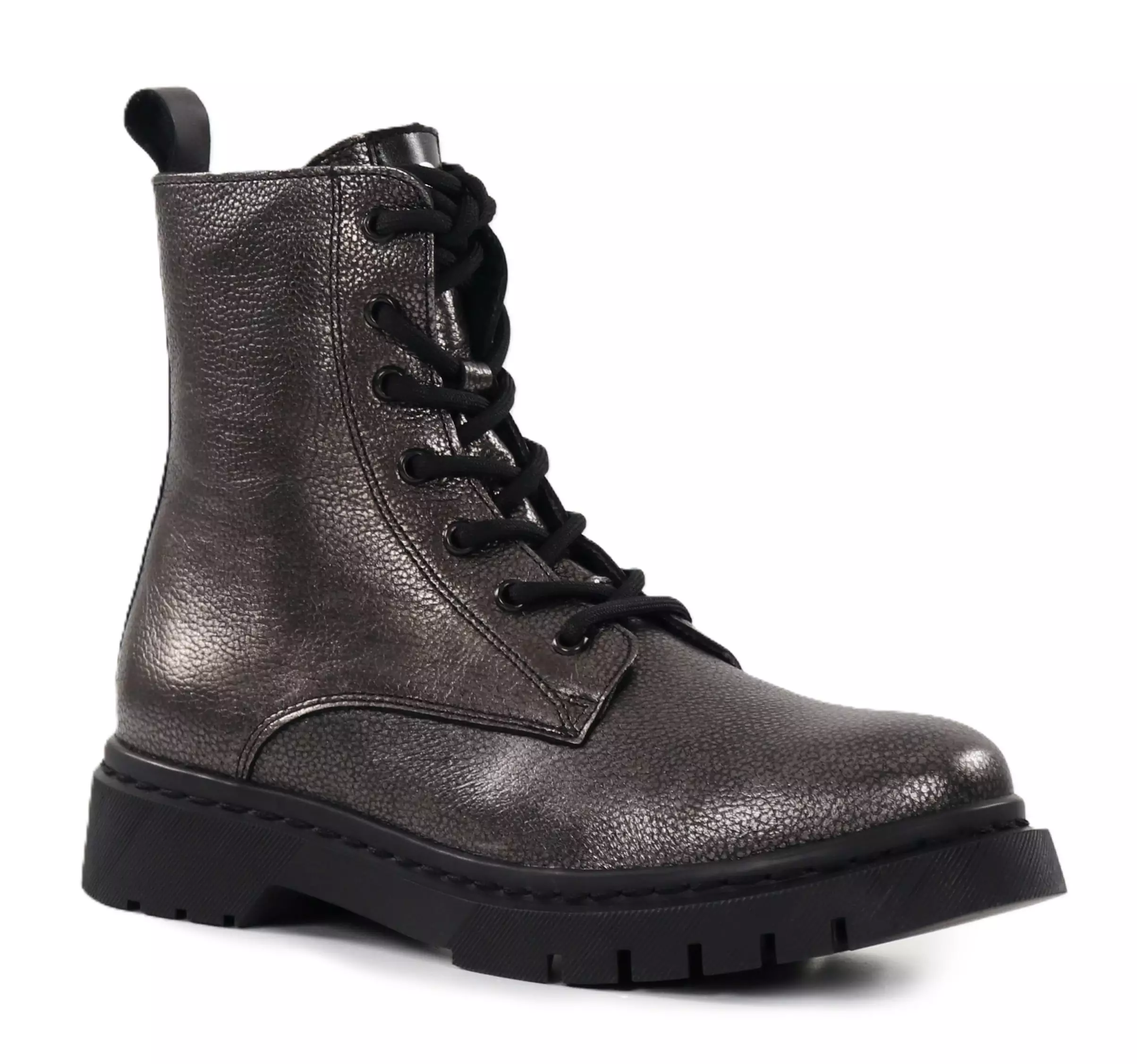 Diese auffälligen und hochwertigen Tamaris Stiefeletten sind aus metallisch schimmerndem Leder gefertigt. Der seitliche Reißverschluss erleichtert das Anziehen, und die klassische Schnürung verleiht dem Look eine rustikale Note und Anpassungsfähigkeit.