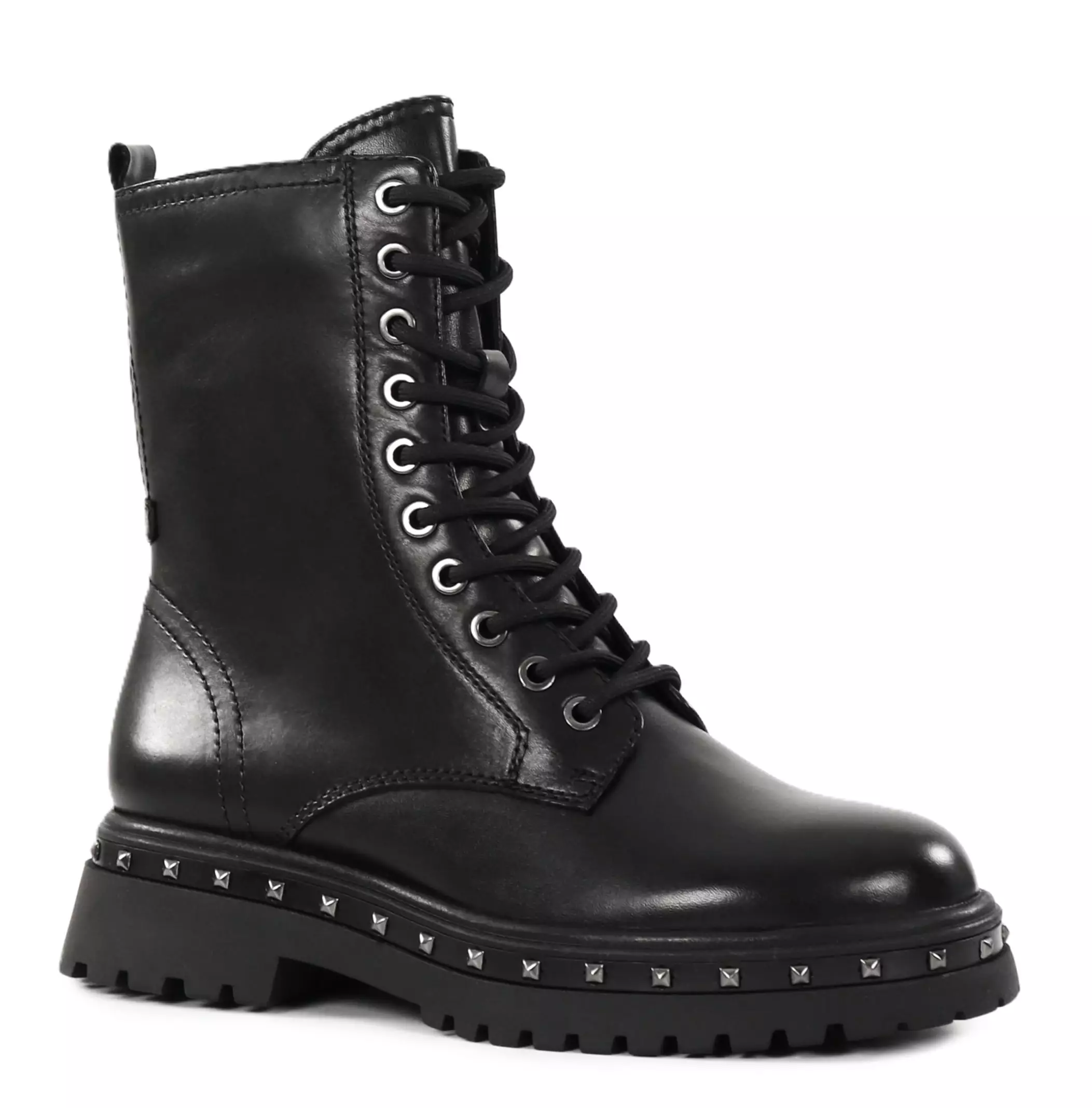 Diese trendigen Military-Style Stiefeletten verzaubern mit auffälligen Nieten-Details, die dem Look eine Prise Attitüde und Persönlichkeit verleihen. Der seitliche Reißverschluss sorgt für ein einfaches Anziehen, und die herausnehmbaren Touch It-Innensohlen passen sich der Fußform an und bieten hervorragenden Tragekomfort.