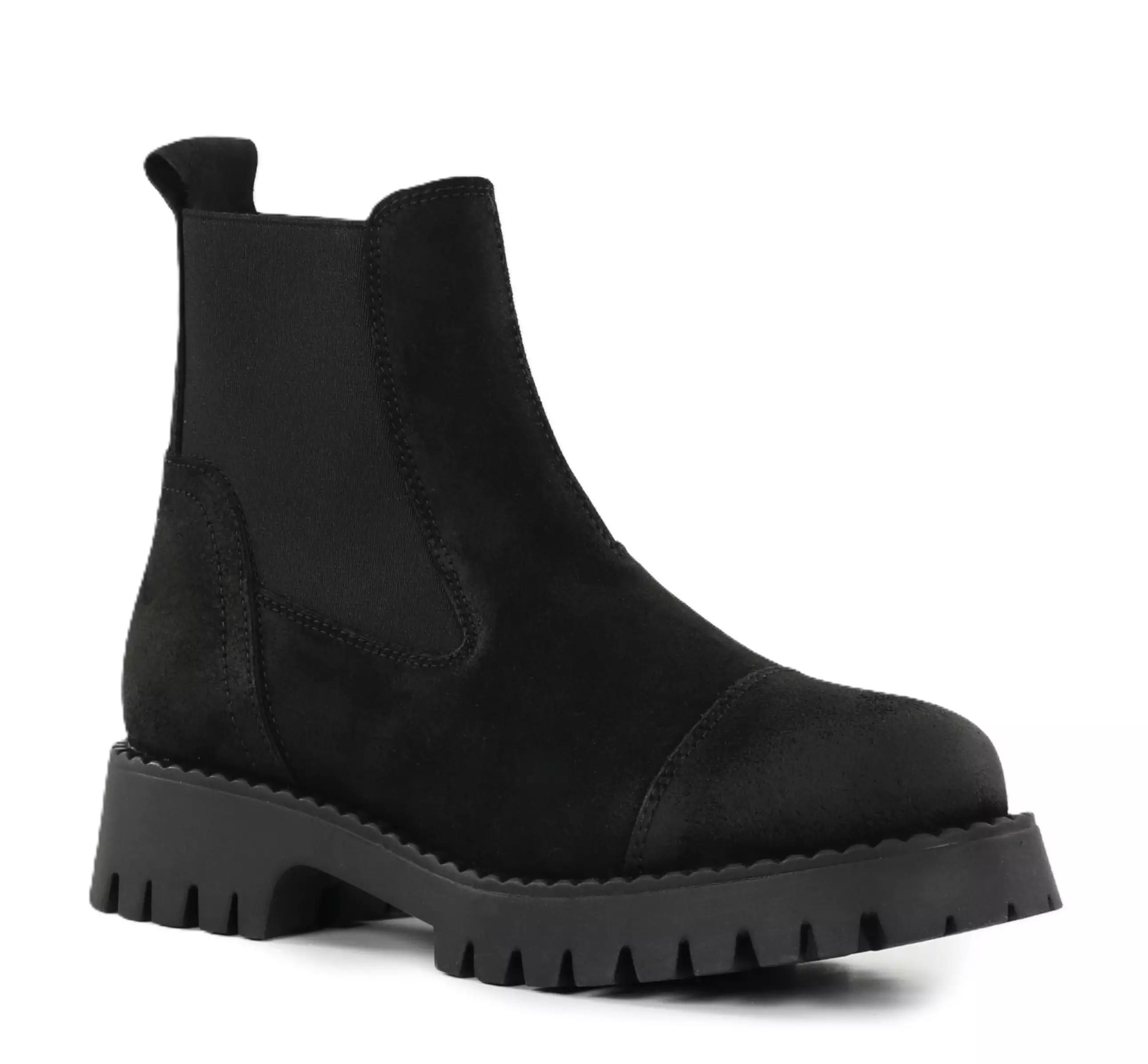 Klassische Damen Chelsea-Stiefeletten aus chromfreiem Nubukleder. Das Futter besteht aus weichem, recyceltem Fleece. Die TR-Gummisohle bietet guten Halt, und die praktischen Seitenelastikeinsätze sowie die Zuglasche an der Rückseite erleichtern das Anziehen.
