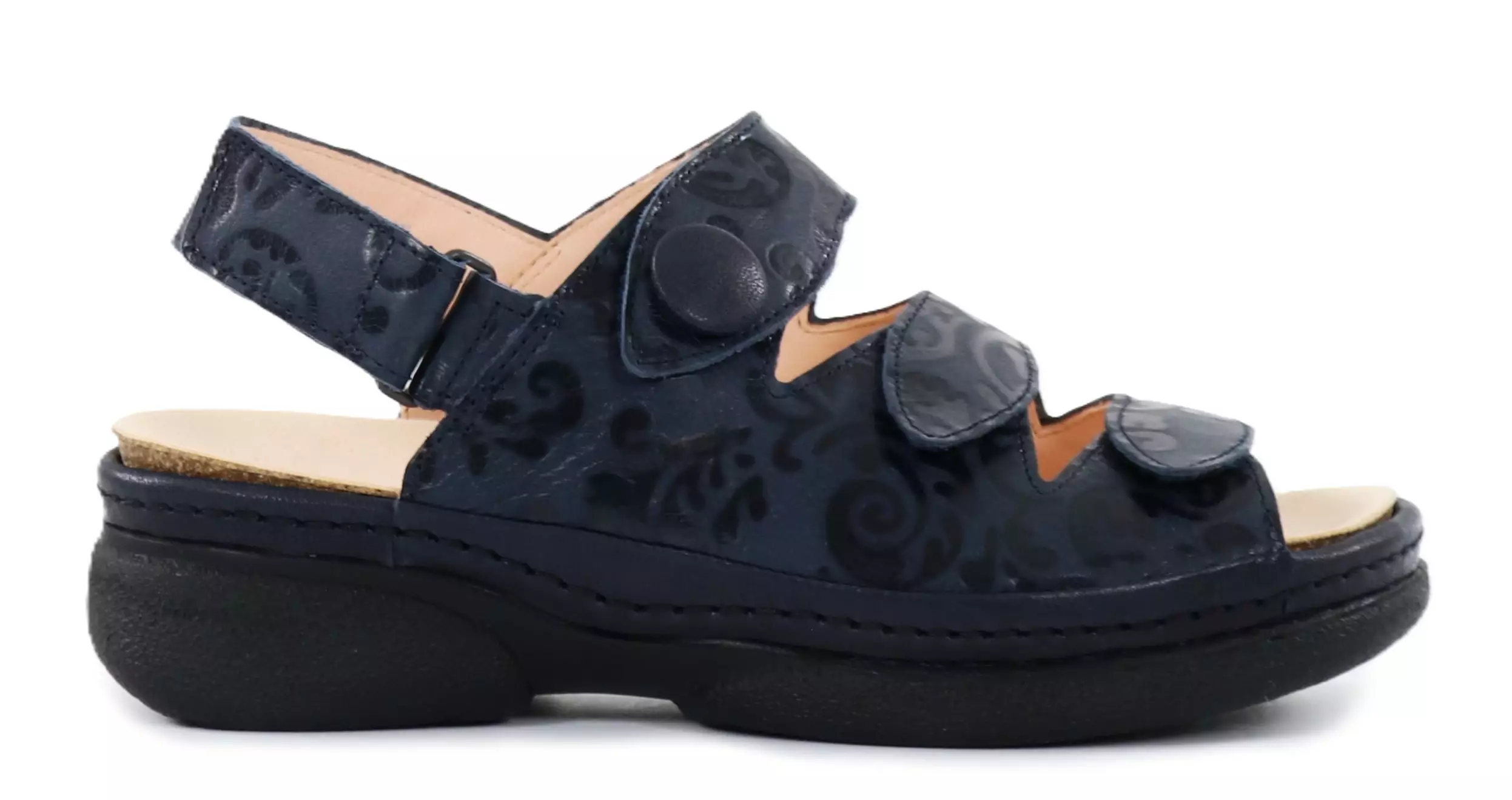Damenlegere Sandalen aus echtem Leder, deren herausnehmbaren Innensohlen und verstellbaren Klettbänder sie bequem und praktisch machen!