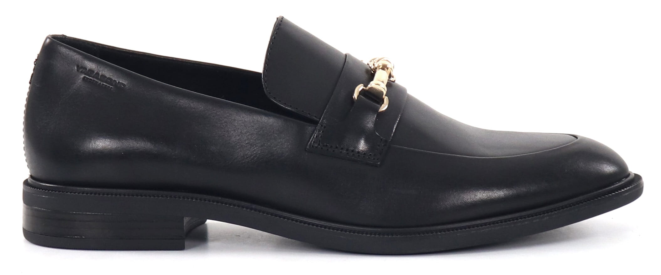 Leder-Loafers mit goldfarbenem dekorativem Schnallenverschluss.