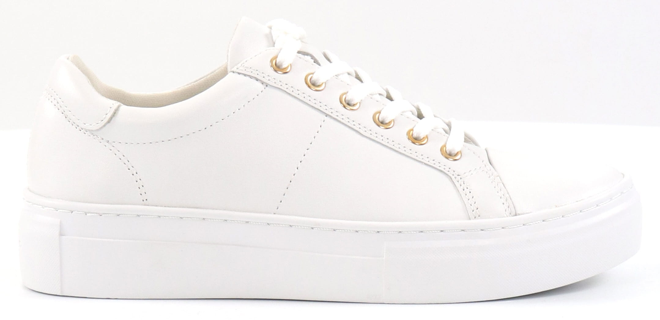 Vielseitige Ledersneakers mit goldenen Akzenten.