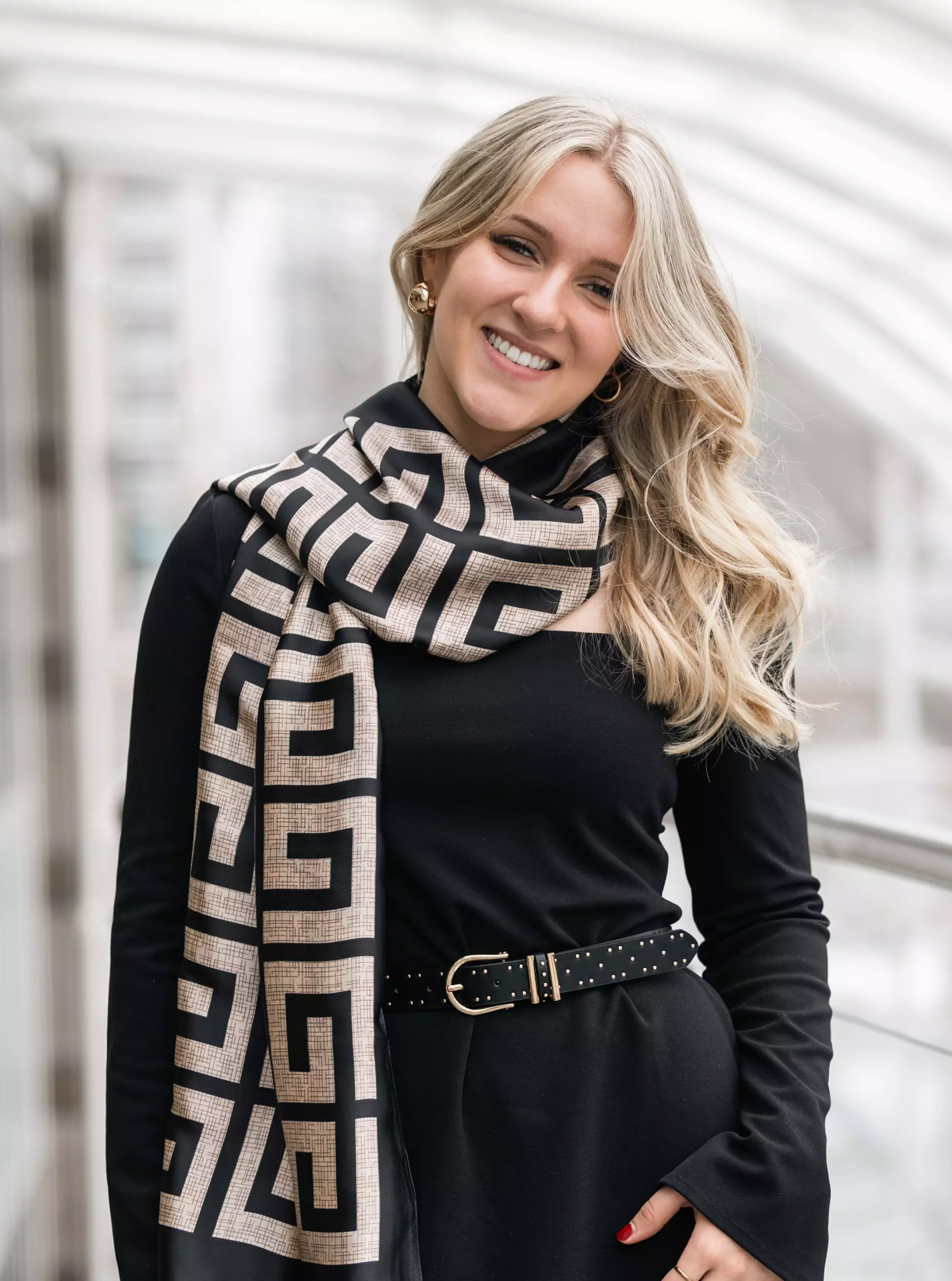 Eleganter Schal in Schwarz/Beige