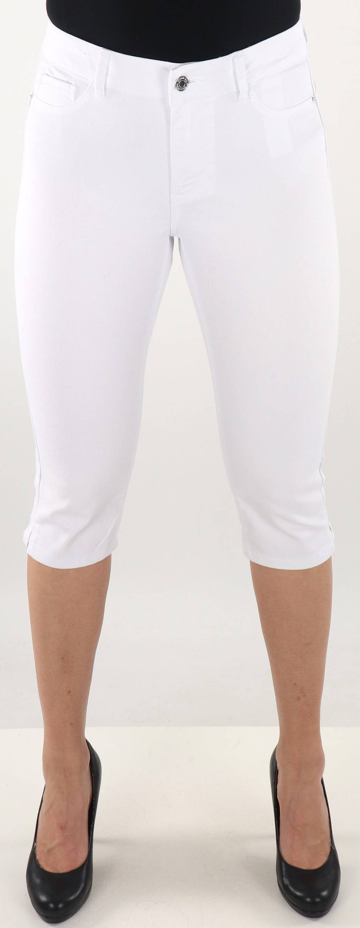 Weiße Capris mit normaler Taille.