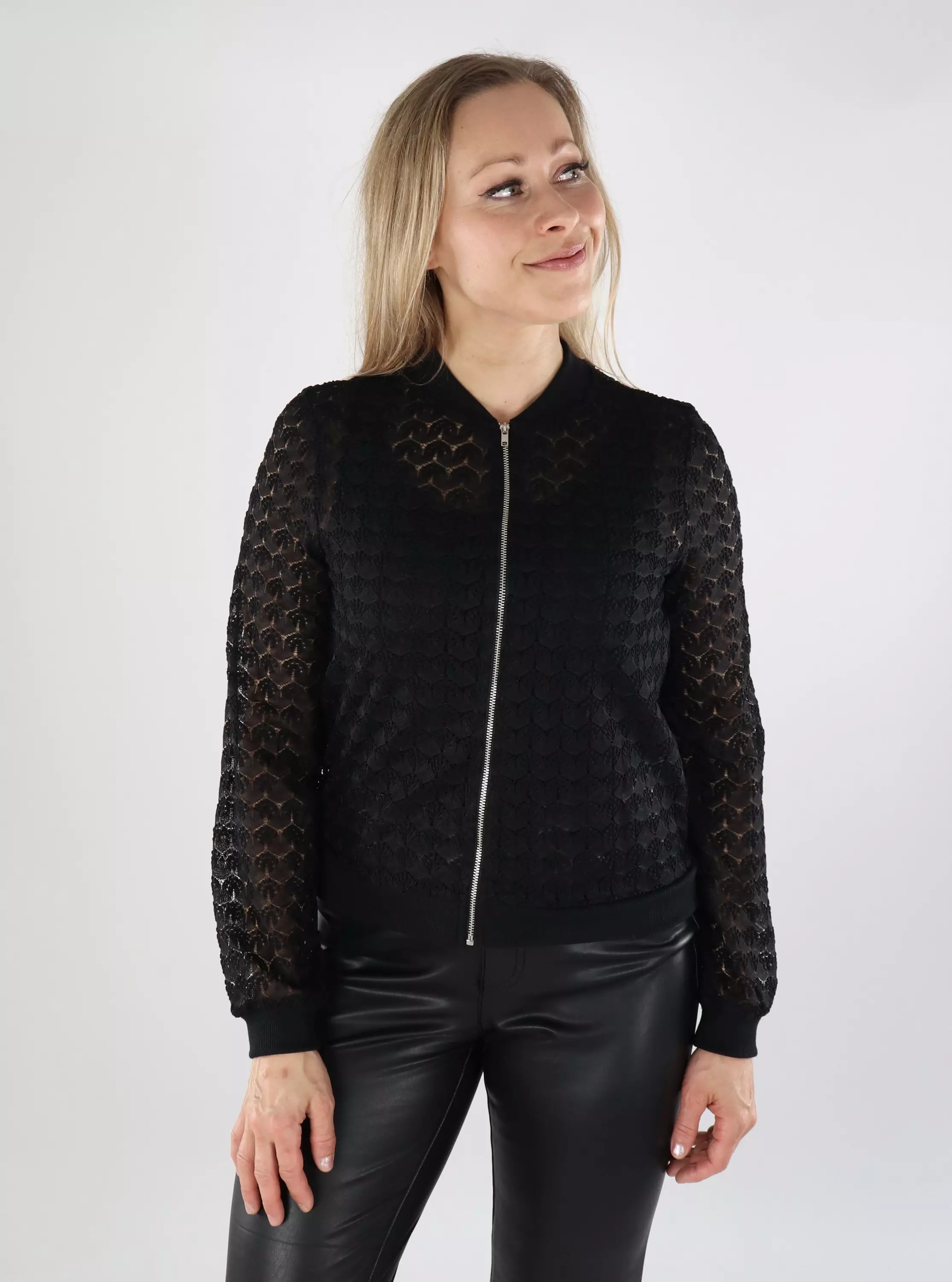Die schwarze Spitze-Bomberjacke von Vero Moda ist die perfekte Wahl für den Alltag sowie für besondere Anlässe. Der leichte Spitzenstoff und das moderne Bomber-Design machen diese Jacke vielseitig und stilvoll.