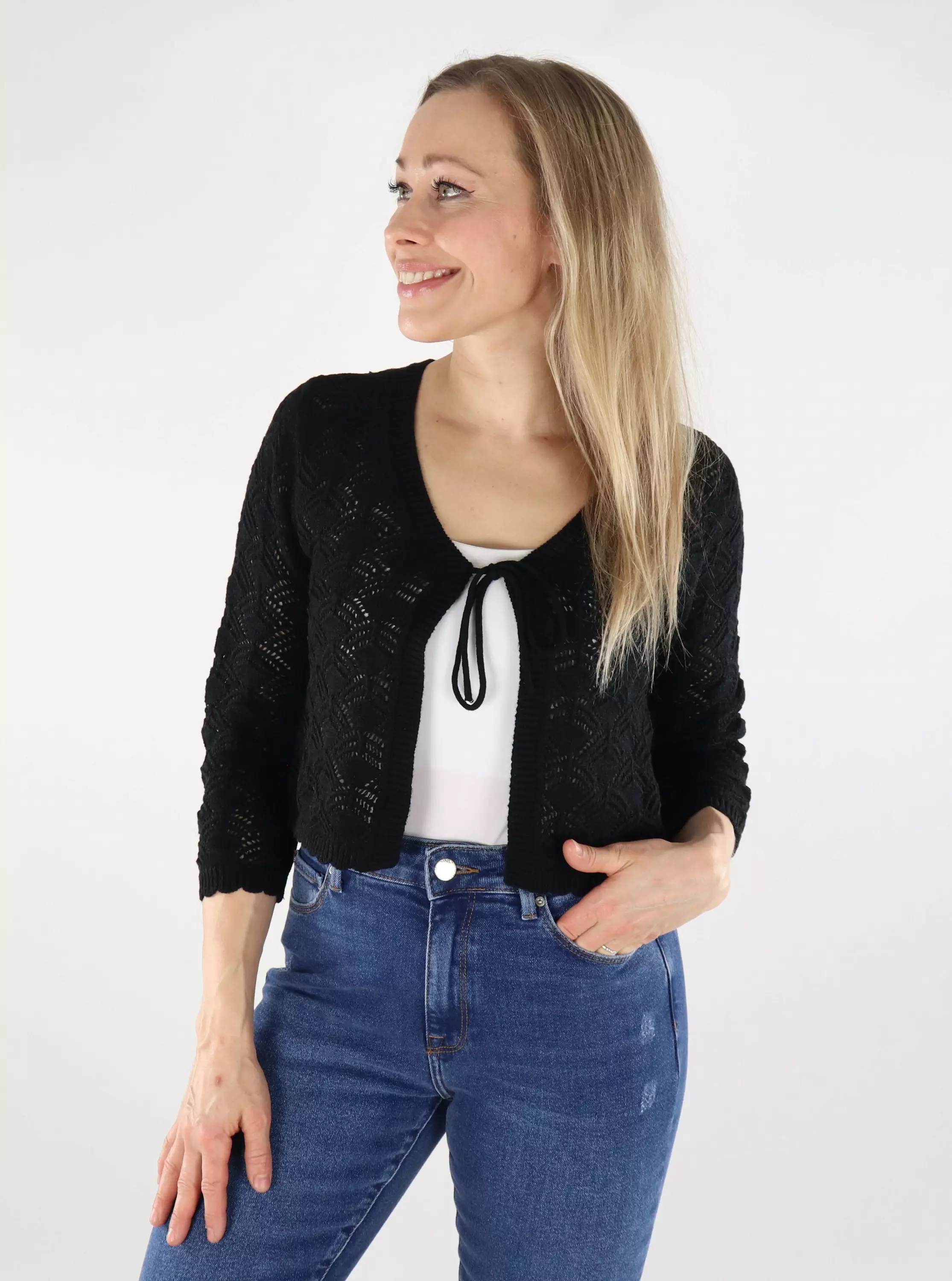 Die kurze Strickjacke von Vero Moda für Damen besteht aus einem elastischen Spitzenstrick und die vorne befindlichen Bindebänder kreieren einen femininen Look. Diese leichte und vielseitige Strickjacke ist perfekt für den Alltag, lässt sich aber auch wunderbar als Teil eines eleganteren Outfits tragen.