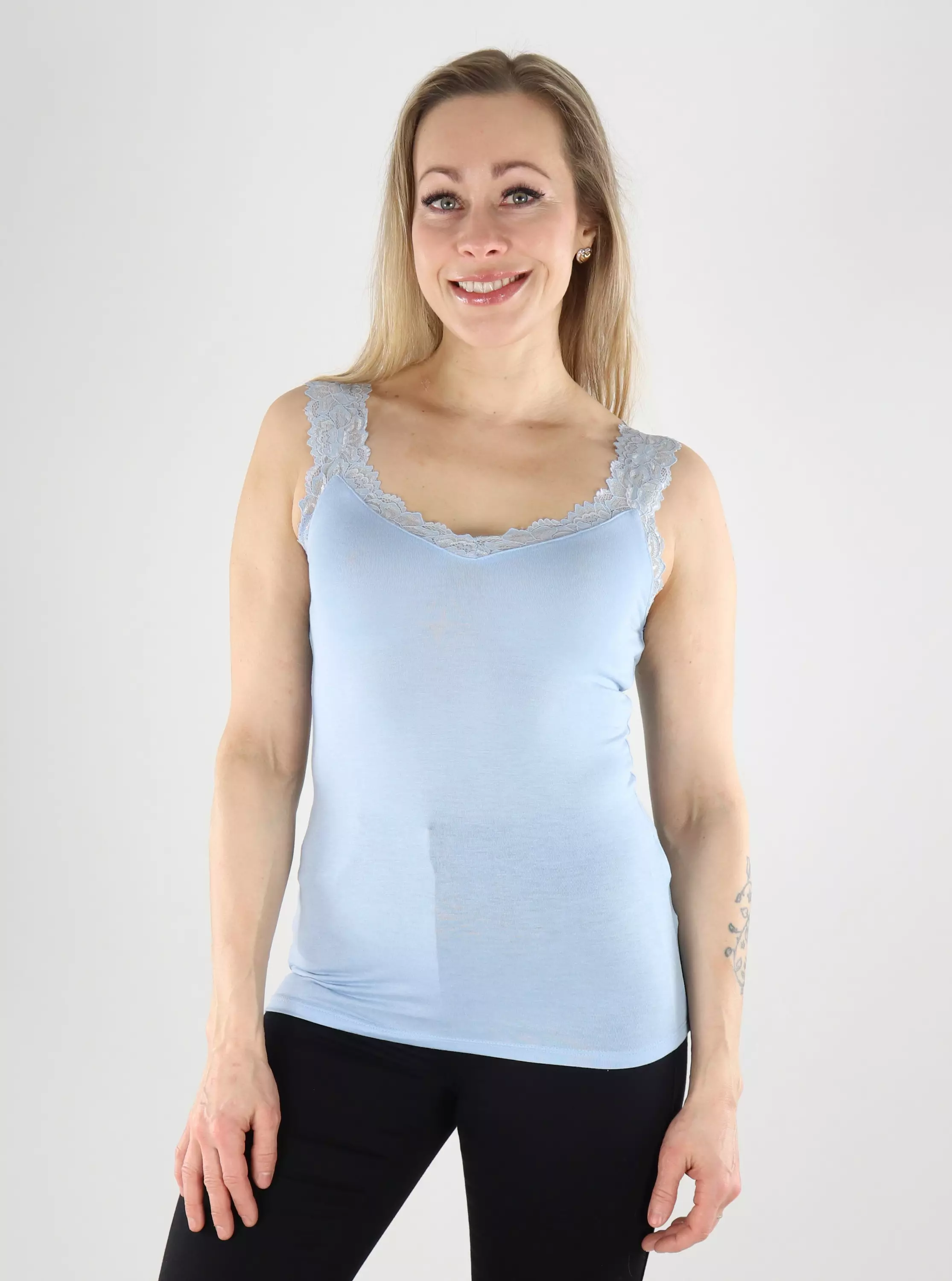 Dieses Vero Moda Top besteht aus einer weichen Viskosemischung, die angenehm auf der Haut liegt. Der Rundhalsausschnitt wird von schöner Spitze verziert, die dem Top eine feminine Note verleiht. Ideal für den Alltag und besondere Anlässe!