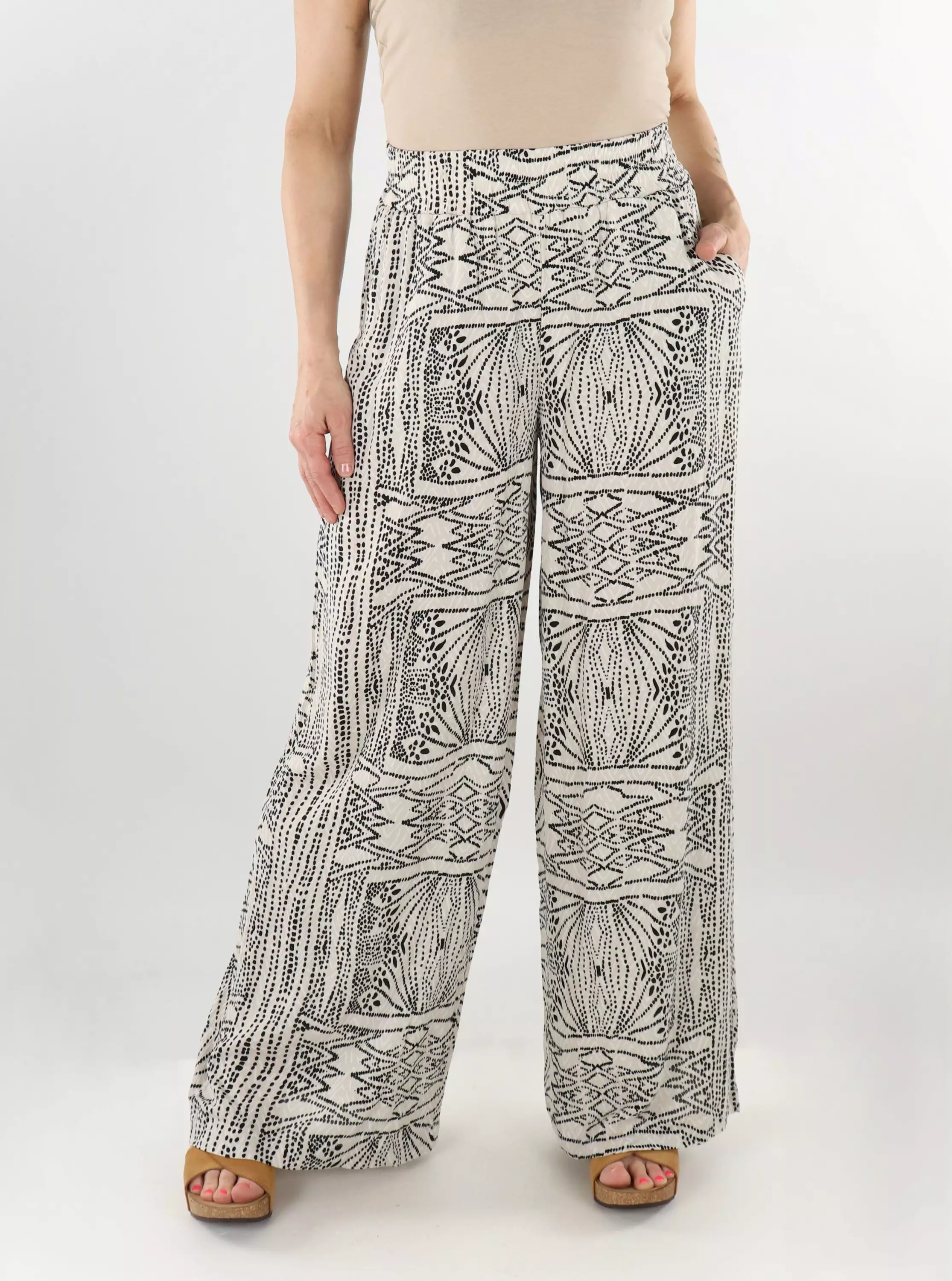 Leichte, aus Viskose hergestellte Hose, die sich angenehm auf der Haut anfühlt. Der elastische Bund sowie der hohe Sitz sorgen für eine exzellente Passform. Perfekt für einen entspannten, stilvollen Alltagslook!
