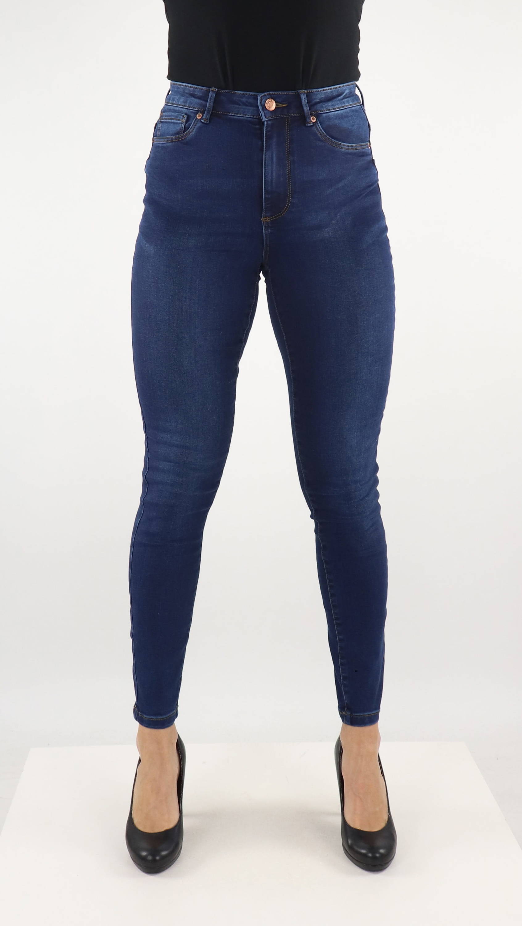 Die Farbe der Jeans ist Blau, so dass Sie mehrere Outfits stylen können - in unserem Online-Shop. Es gibt mehrere Optionen, zum Beispiel können Sie einen schwarzen Blazer wählen und ihn mit schwarzen High Heels kombinieren. Alles, was Sie brauchen, finden Sie im Stiletto.fi Online-Shop.