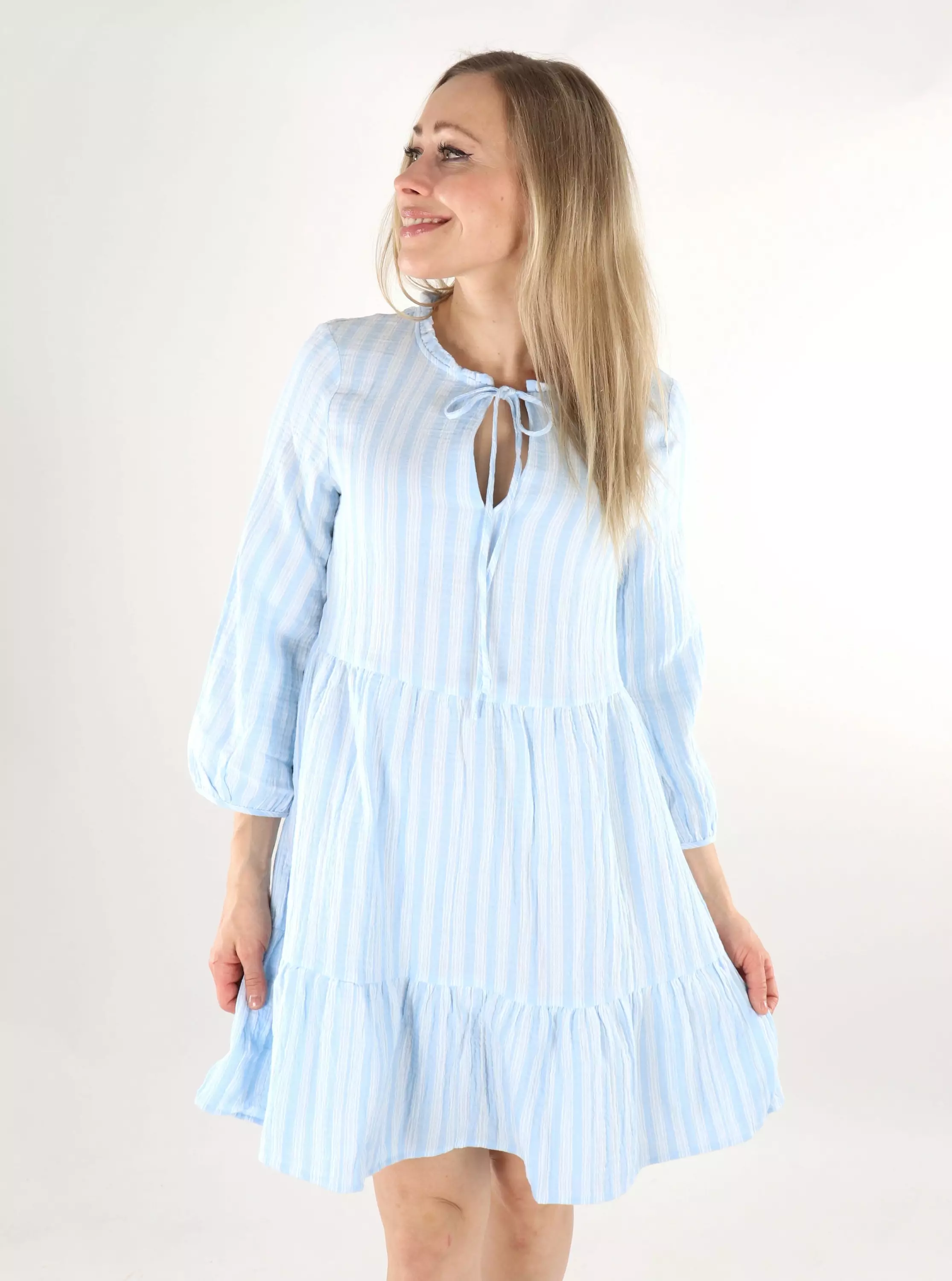 Vero Moda Kleid/Tunika 3/4 luftig blau/Schneeweiß