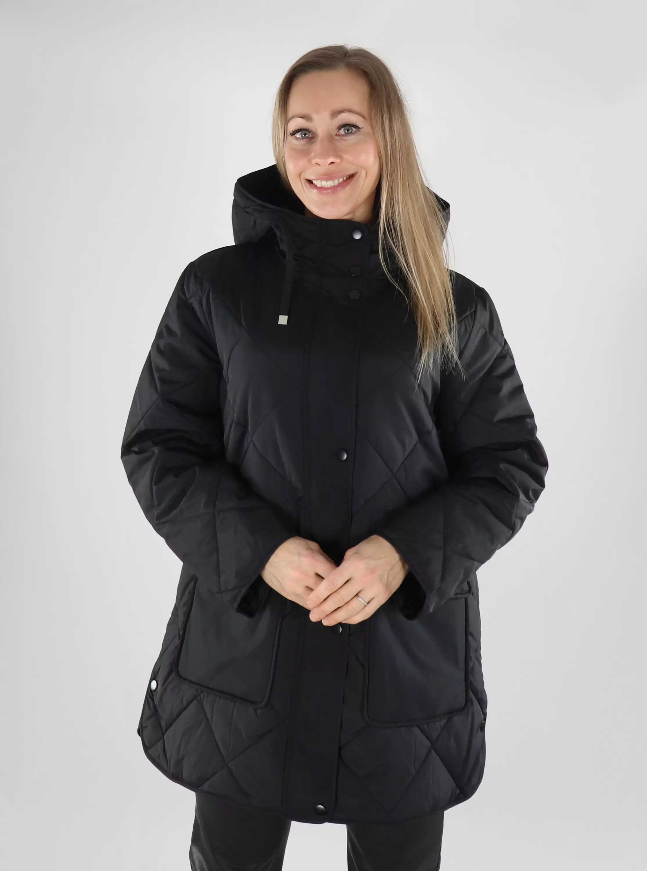 Stilvolle gesteppte leicht gefütterte Jacke mit Reißverschluss und großen Fronttaschen.
