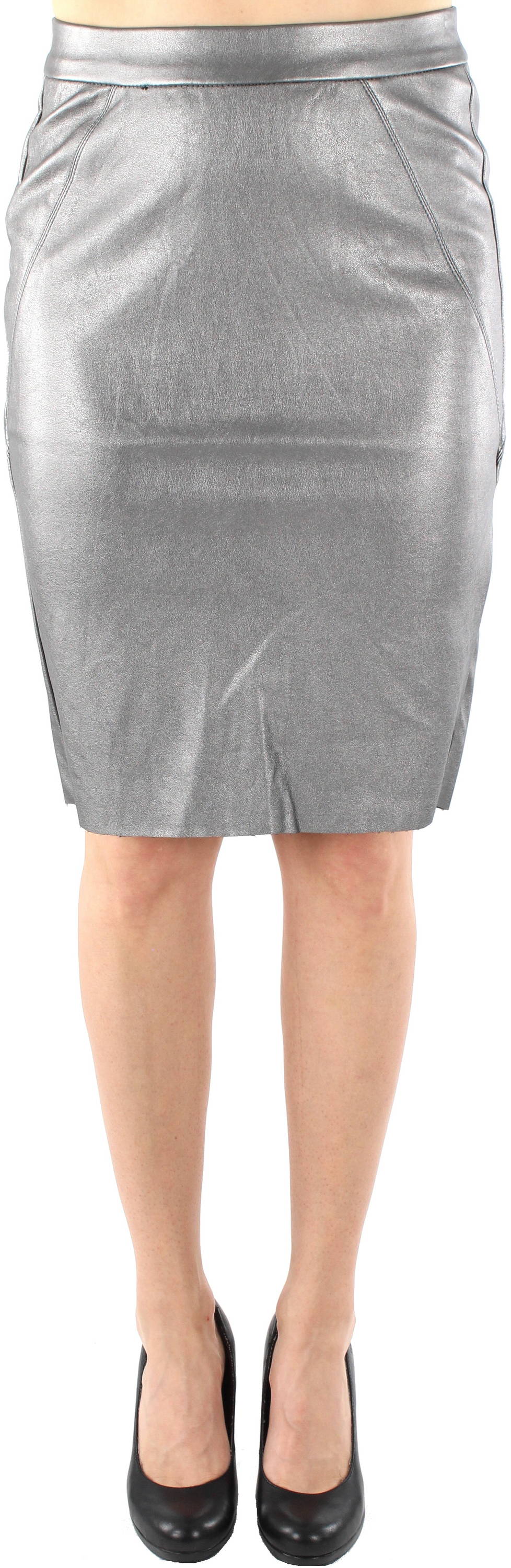 Faszinierender knielanger silberner Bleistiftrock.