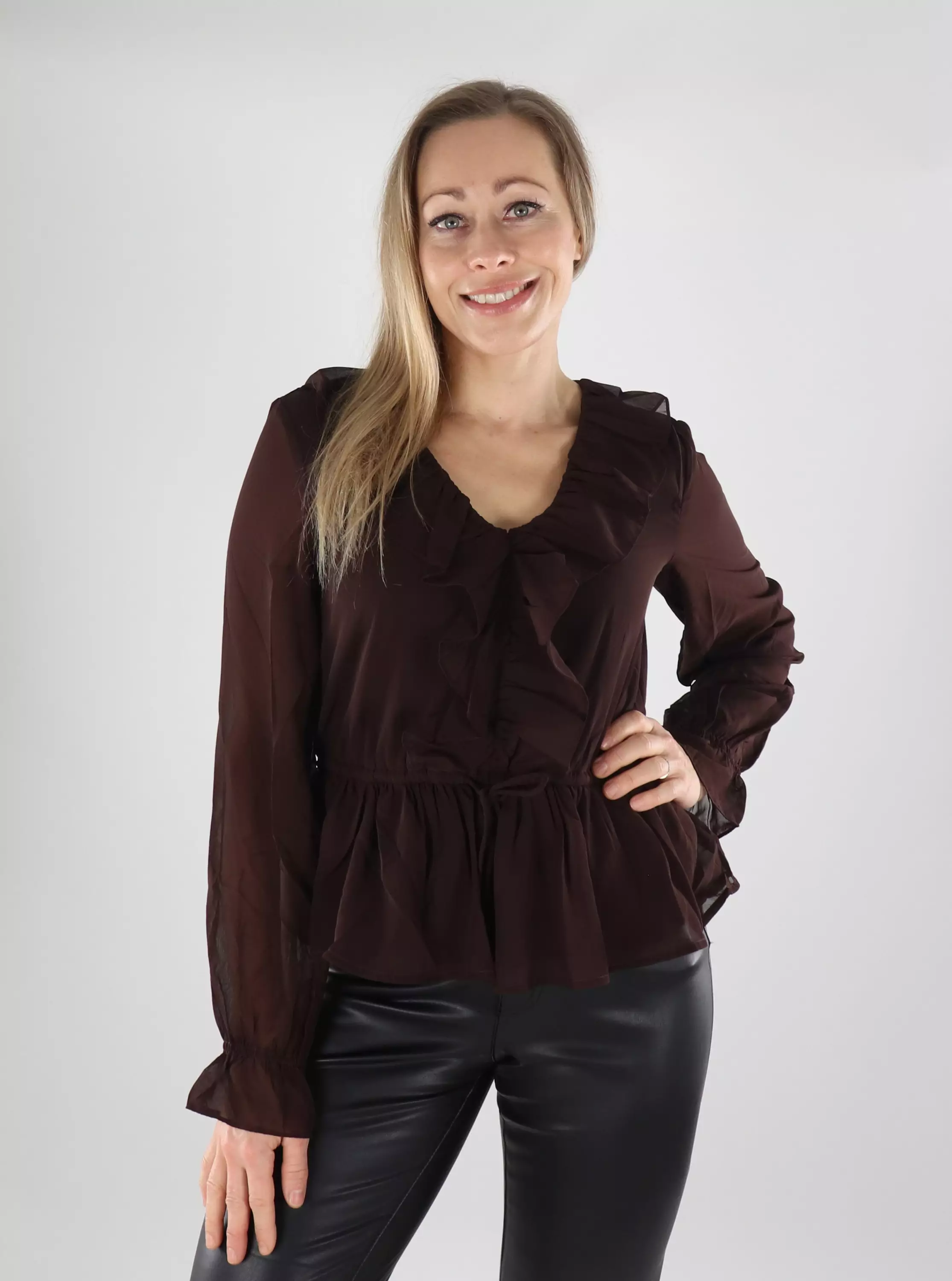 Kreieren Sie einen schönen und femininen Look mit dieser Bluse von Vero Moda, die dekorative Rüschen-Details und einen schmeichelnden V-Ausschnitt aufweist.