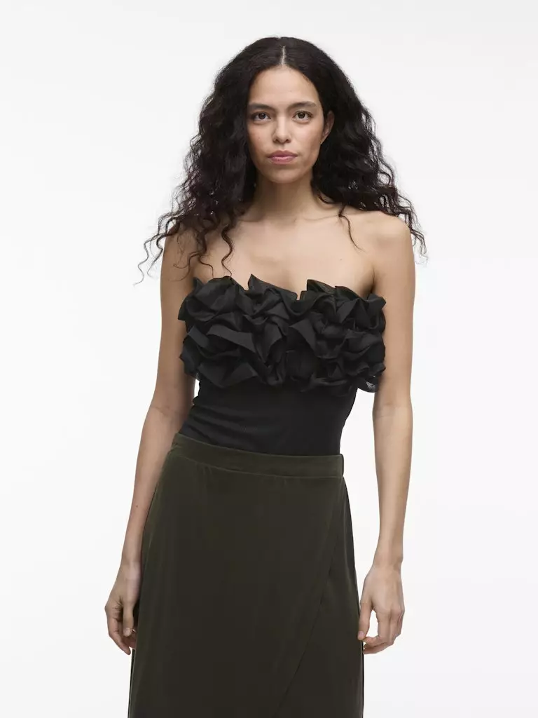 Das beliebte Body von Vila ist in einem schmeichelhaften Tube-Design mit femininen Rüschendetails auf der Vorderseite gestaltet. Der silikonisierte Saum auf der Innenseite hält das Oberteil sicher an Ort und Stelle, damit du dich unbesorgt bewegen kannst.
