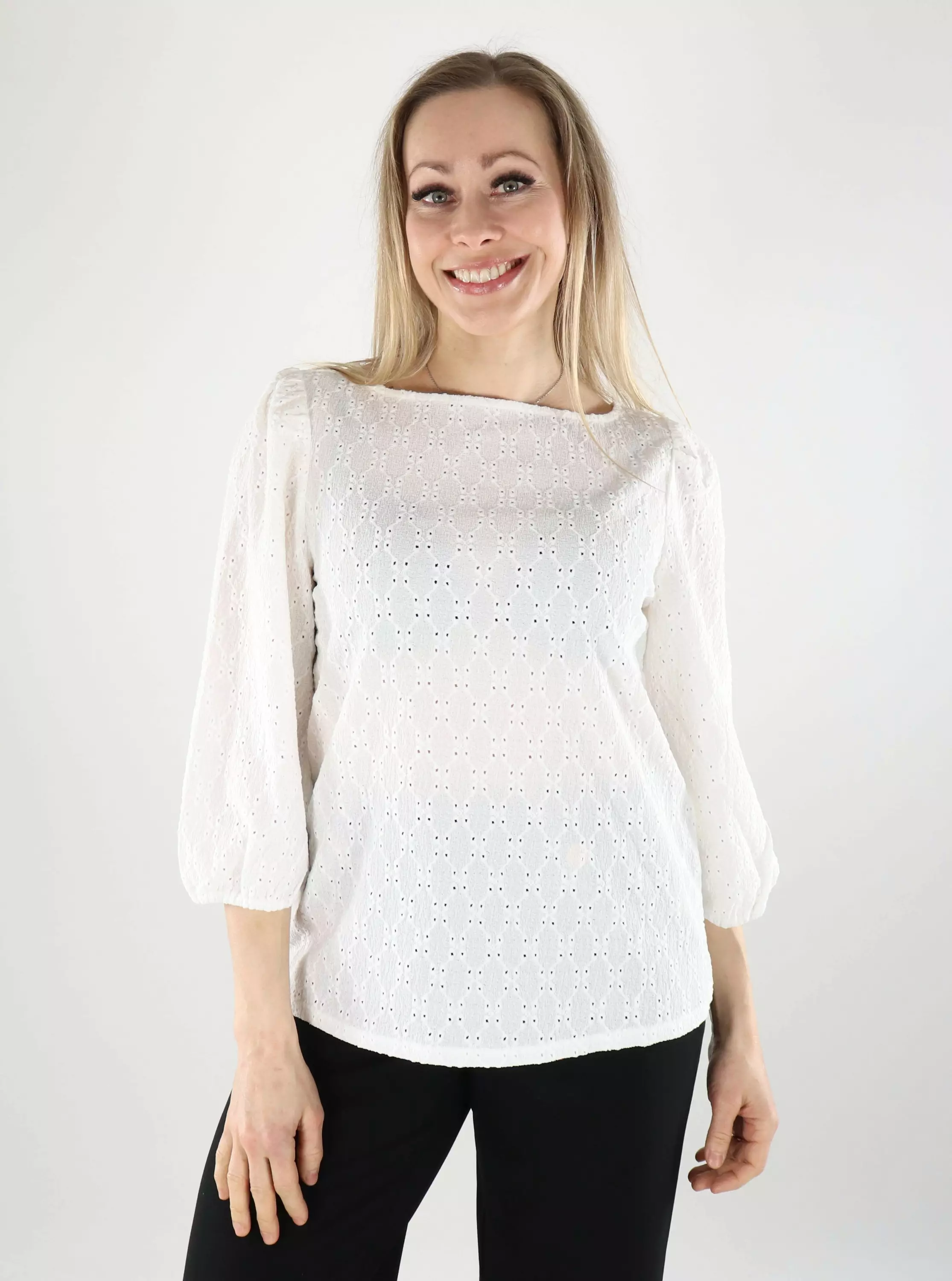 Hübsches Shirt von VILA mit einem wunderschönen Lochmuster, das Leichtigkeit und Ausdruckskraft in Ihr Outfit bringt! Das elastische Material garantiert einen angenehmen Sitz, und der stilvolle Bootcut-Ausschnitt vervollständigt den zeitlosen Look. Perfekt für den Alltag und auch für schickere Anlässe geeignet.