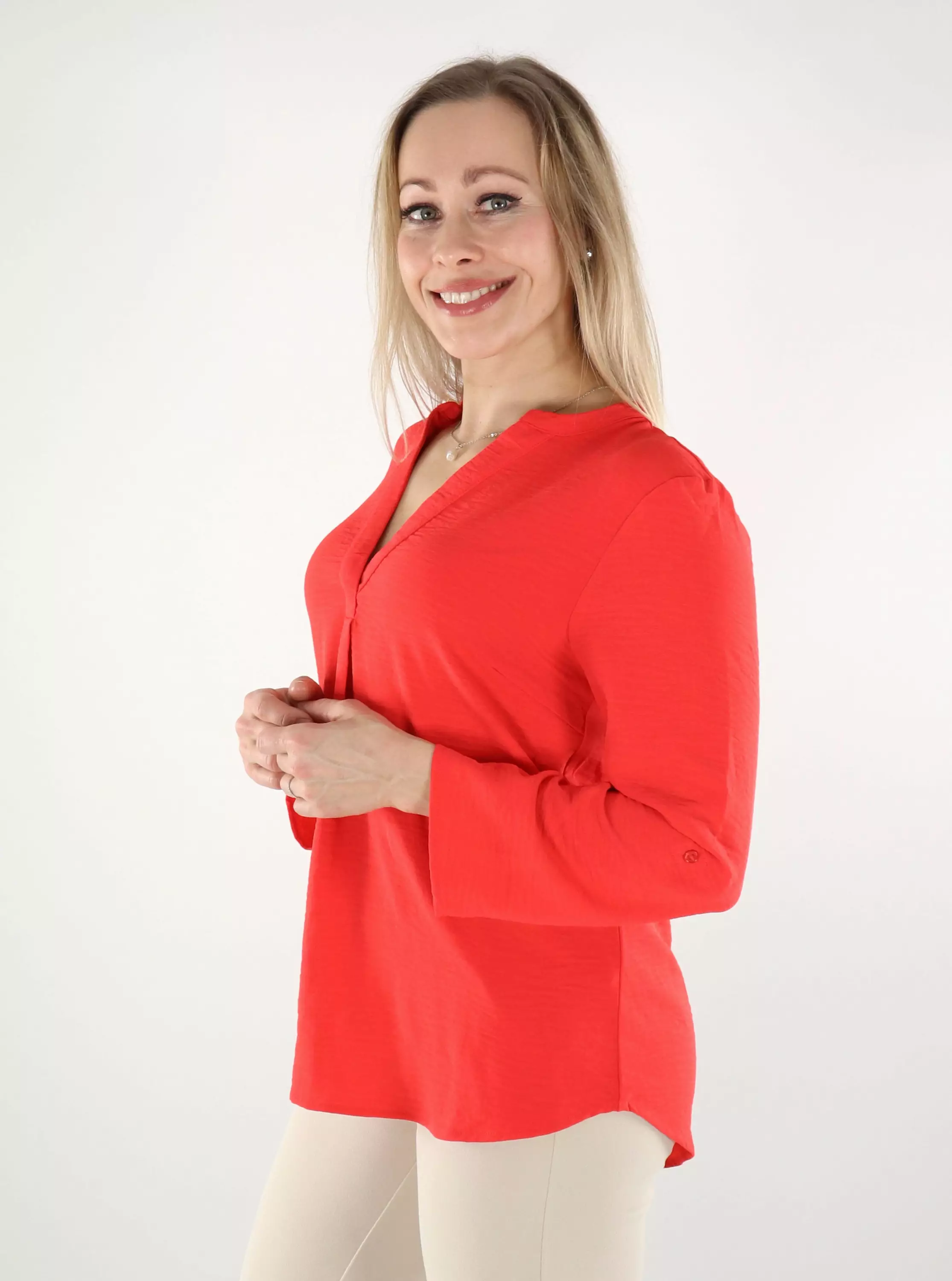 Lässige Bluse mit abgerundetem Saum. Hergestellt aus angenehm elastischem Material!