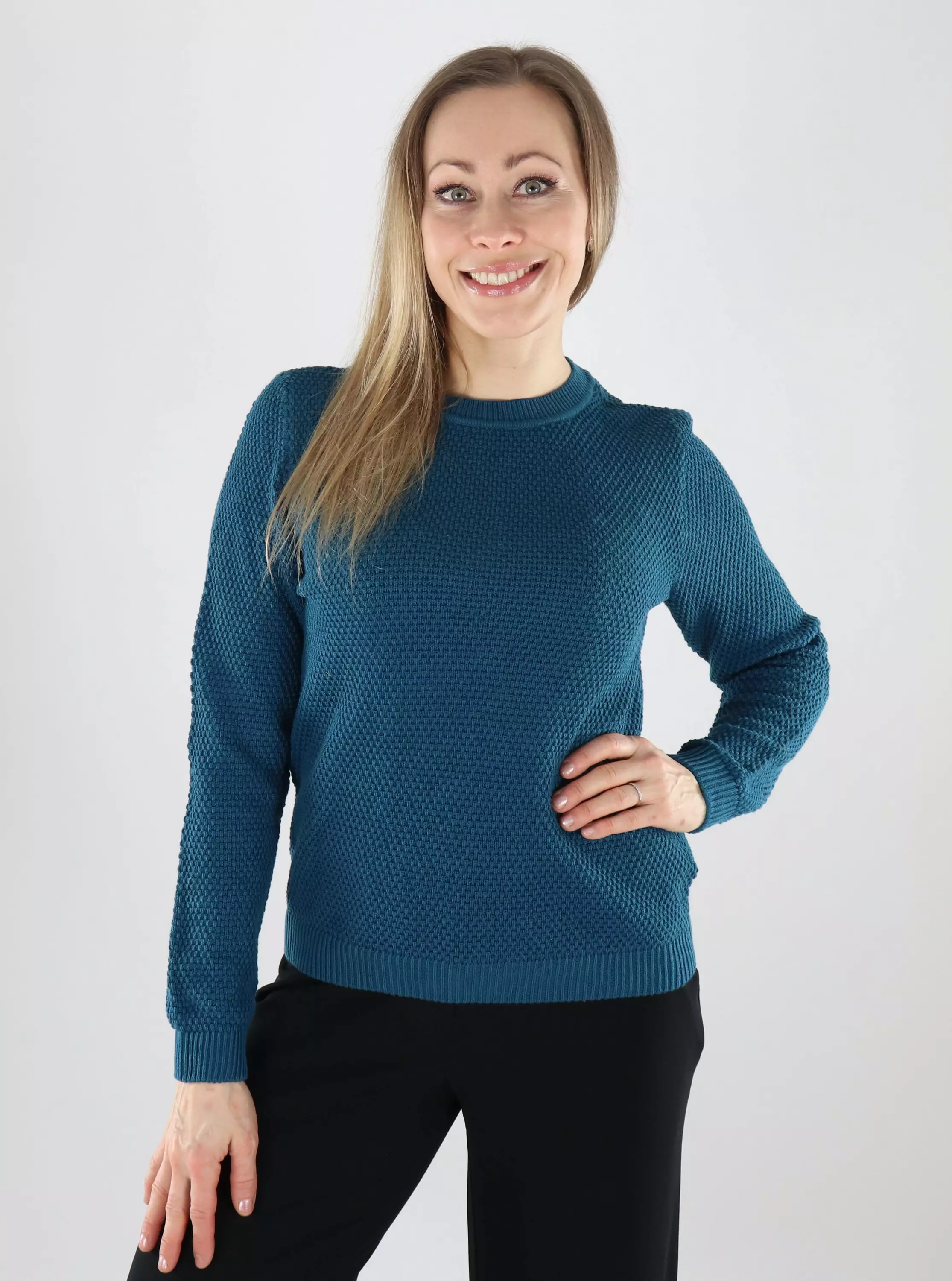 Vila Damenpullover O-Ausschnitt blau koralle