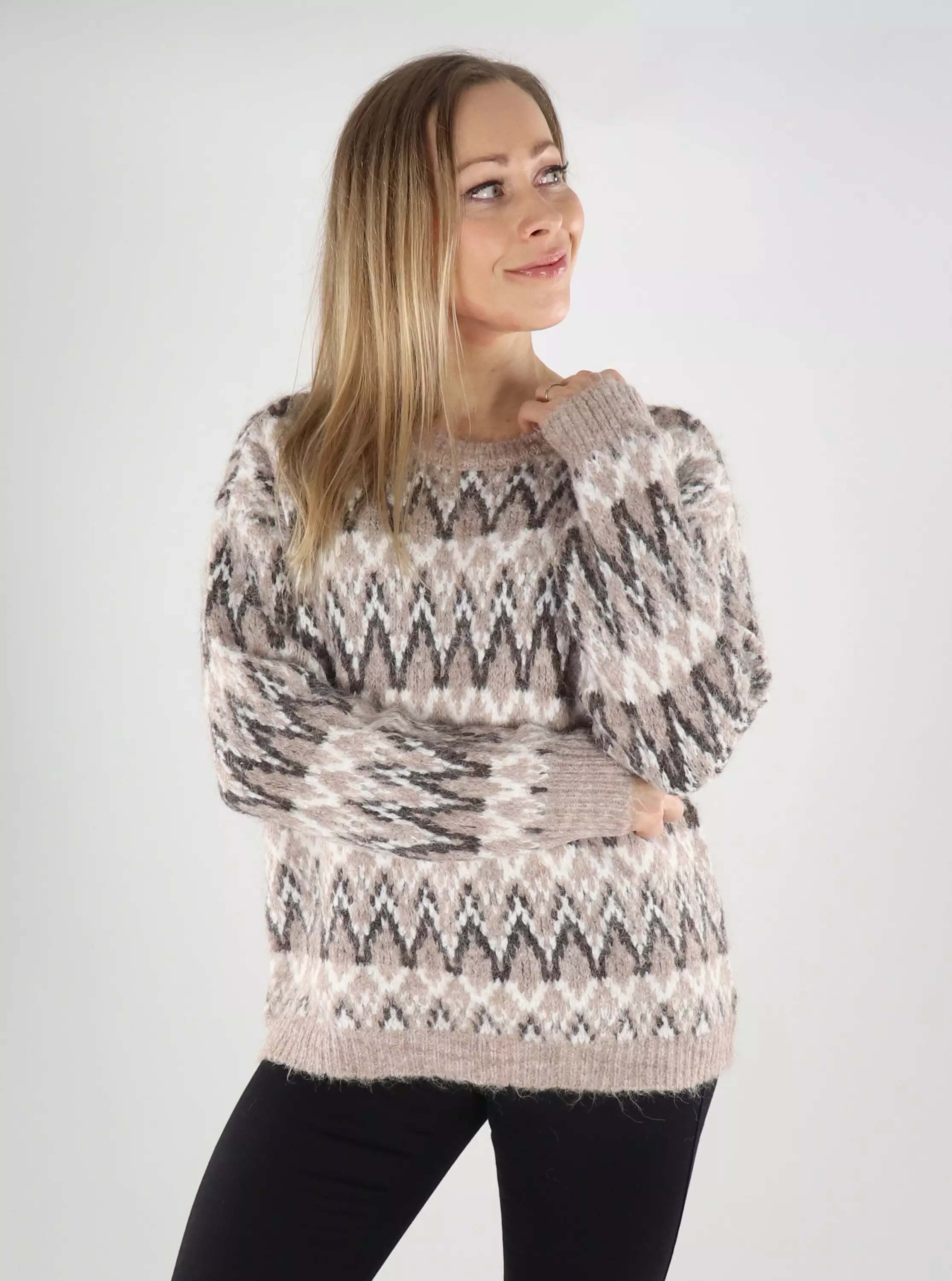Der gemusterte Pullover von Vila begeistert mit seinem weichen und elastischen Material, das 8 % Wolle enthält und Wärme bietet. Die wunderschöne beige Farbe und das stilvolle Muster machen ihn zu einer vielseitigen Wahl für den Alltag sowie die Freizeit.
