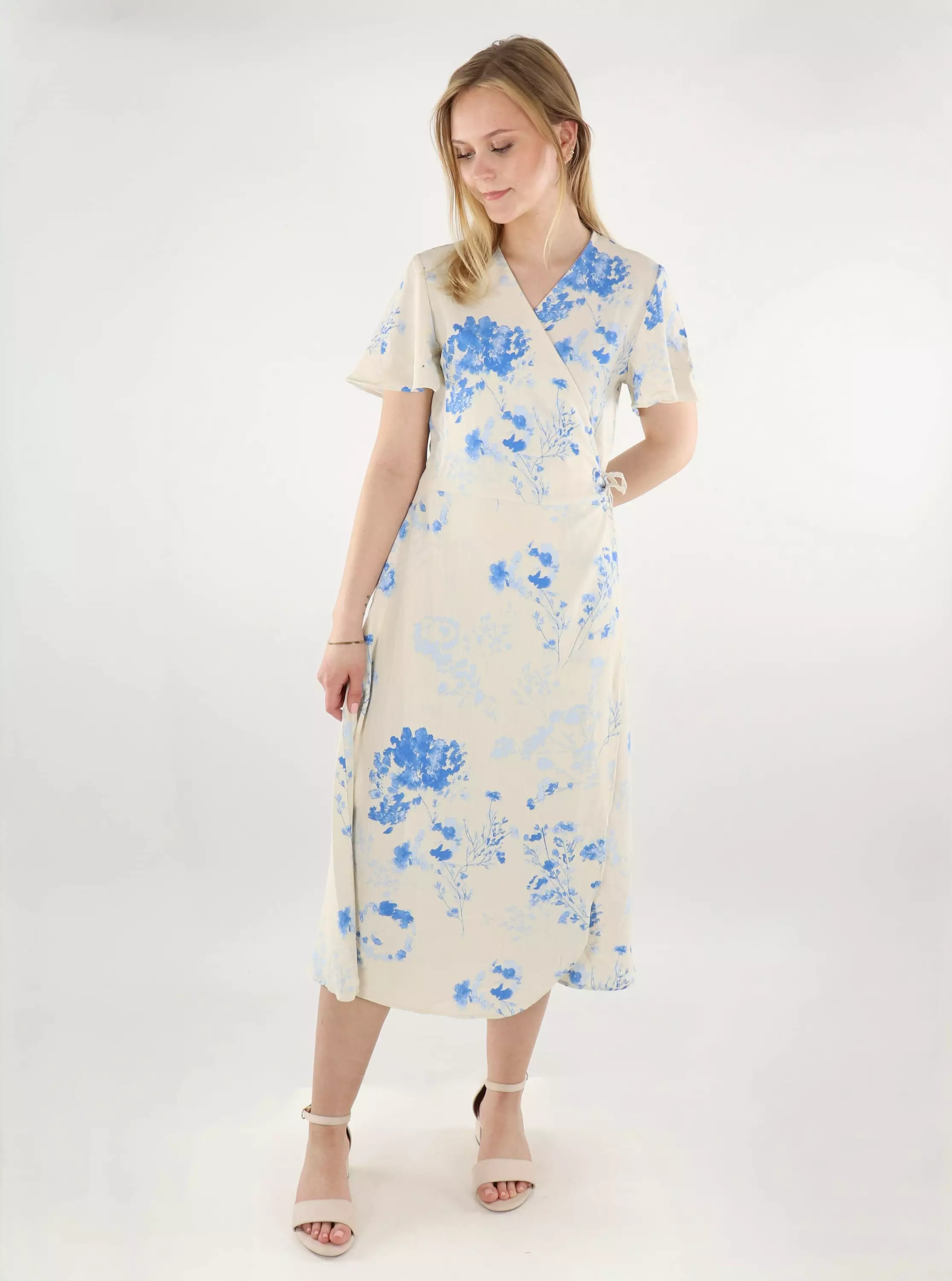 Vila florale Wickelkleid Lovie Wrap Midi Birke/Cai