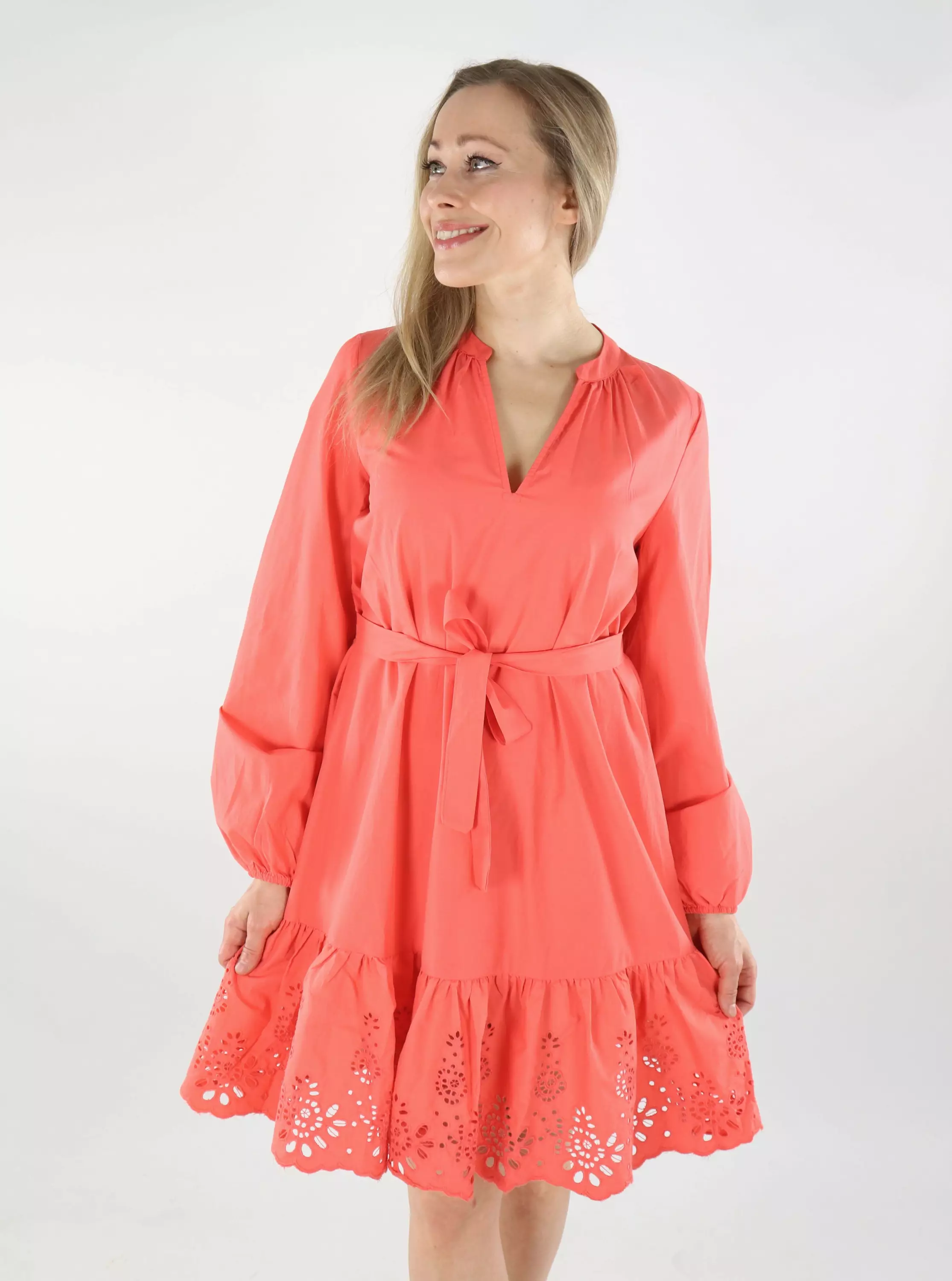 Das wunderschöne Kleid von Vila hat einen schönen spitzenartigen Stoff am Saum und einen taillierten, zum Binden verstellbaren Gurt. Das leichte und luftige Design eignet sich perfekt für sommerliche Tage oder festlichere Anlässe!