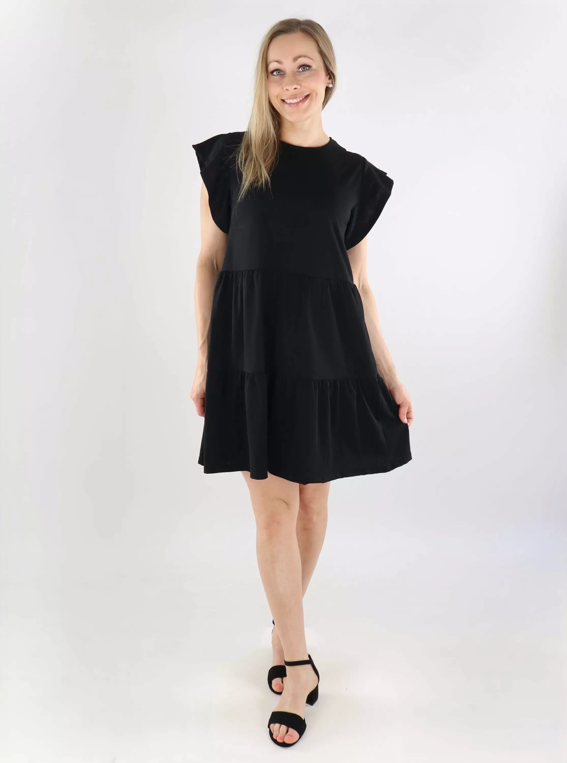 Dieses lässig geschnittene Kleid besteht aus weichem und elastischem Baumwollmischgewebe, das es zu einer idealen Wahl für warme Sommertage macht! Es lässt sich ganz einfach sowohl mit Sneakern als auch mit Sandalen kombinieren.