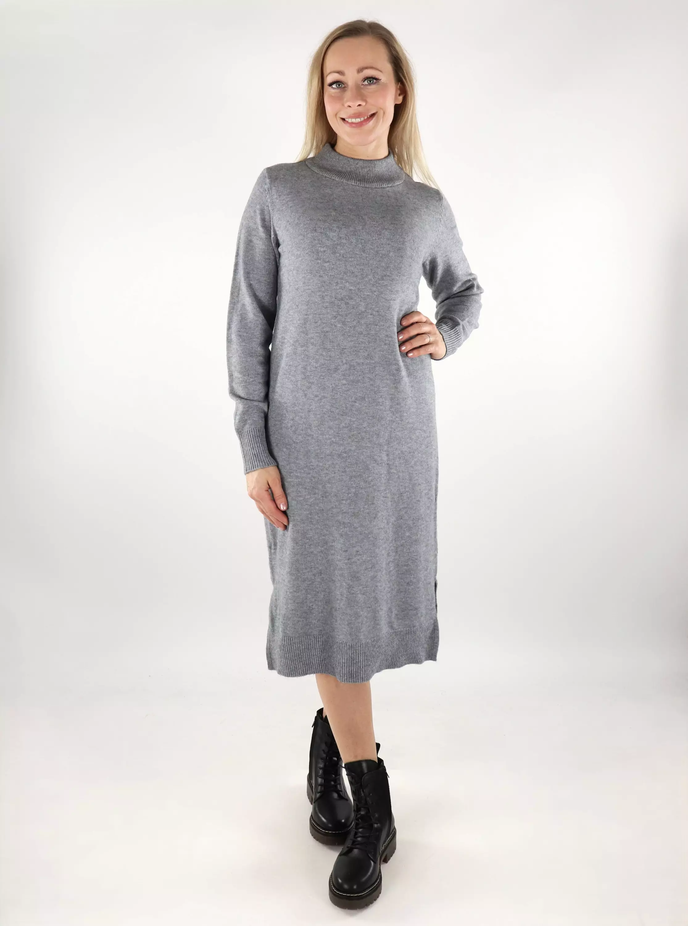 Vila Strickkleid Midi Ril Rundhalsausschnitt mittelgrau