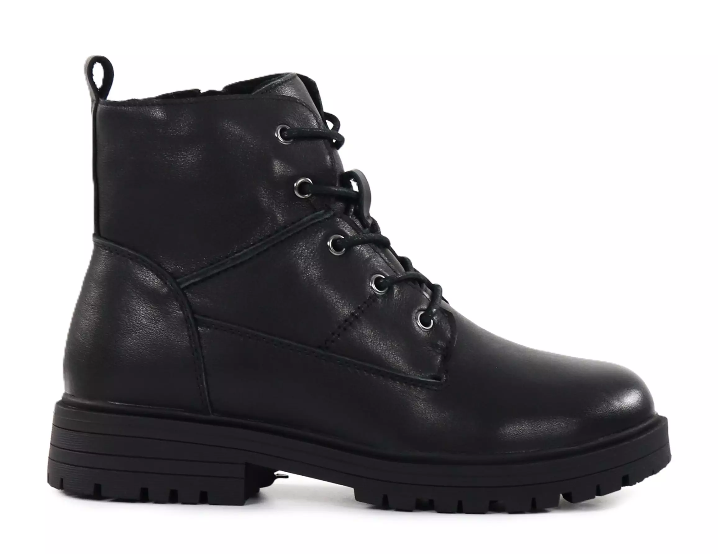 Moderne Leder-Stiefeletten im Military-Stil, die Praktikabilität und Eleganz vereinen! Die wendbaren Rutschsicherheiten bieten zusätzlichen Halt bei glatten Bedingungen, und der Reißverschluss erleichtert das Anziehen. Eine hervorragende Wahl für die wechselhaften Winterbedingungen.